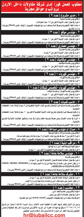 مطلوب موظفين للعمل لدى شركات المقاولات