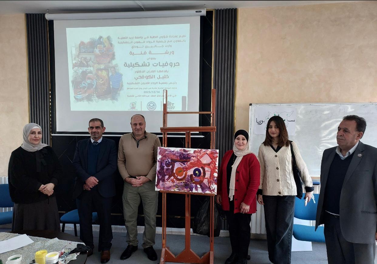 عمون - بهدف تسليط الضوء على جماليات الحرف العربي بوصفه عنصرًا تشكيليًا يتجاوز وظيفته اللغوية، ليغدو فضاءً بصريًا مفتوحًا على الإبداع والتجريب، وفي إطار حرصها على دعم الإبداع الفني وتعزيز الحراك الثقافي داخل الحرم الجامعي، نظّمت عمادة شؤون الطلبة في جامعة إربد الأهلية، بالتعاون مع جمعية الروّاد للفنون التشكيلية، ورشة فنية متخصصة بعنوان «حروفيات تشكيلية»، قدّمها الفنان الدكتور خليل الكوفحي، أحد أبرز روّاد الحروفية في الفن التشكيلي العربي.