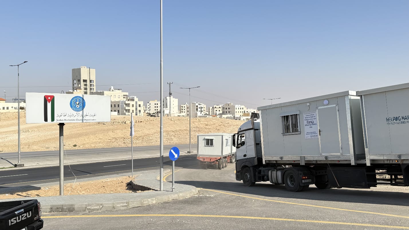 وقالت الهيئة الخيرية الأردنية الهاشمية في بيان، إن القافلة تضم 21 شاحنة، تحتوي على كرفانات سكنية ومواد غذائية.