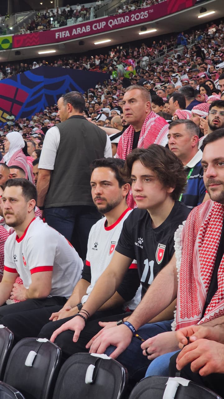عمون - وصل سمو الأمير الحسين بن عبدالله الثاني، ولي العهد، وسمو الامير علي ابن الحسين، وسمو الأمير هاشم بن عبدالله الثاني، وسمو الأميرة سلمى، إلى ستاد البيت في مدينة الخور القطرية، لمتابعة مباراة المنتخب الوطني لكرة القدم ونظيره السعودي الشقيق، ضمن منافسات الدور نصف النهائي من بطولة كأس العرب 2025. |