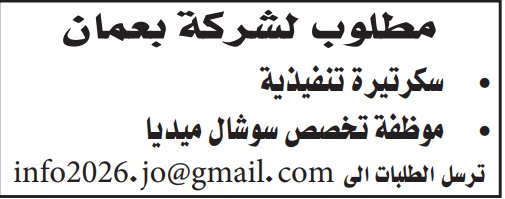 مطلوب سكرتيرة تنفيذية وموظفة سوشال ميديا
