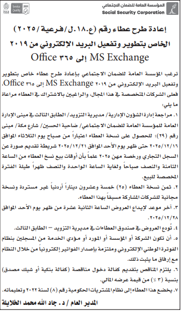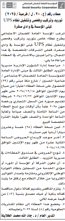 عطاءات صادرة عن المؤسسة العامة للضمان الاجتماعي