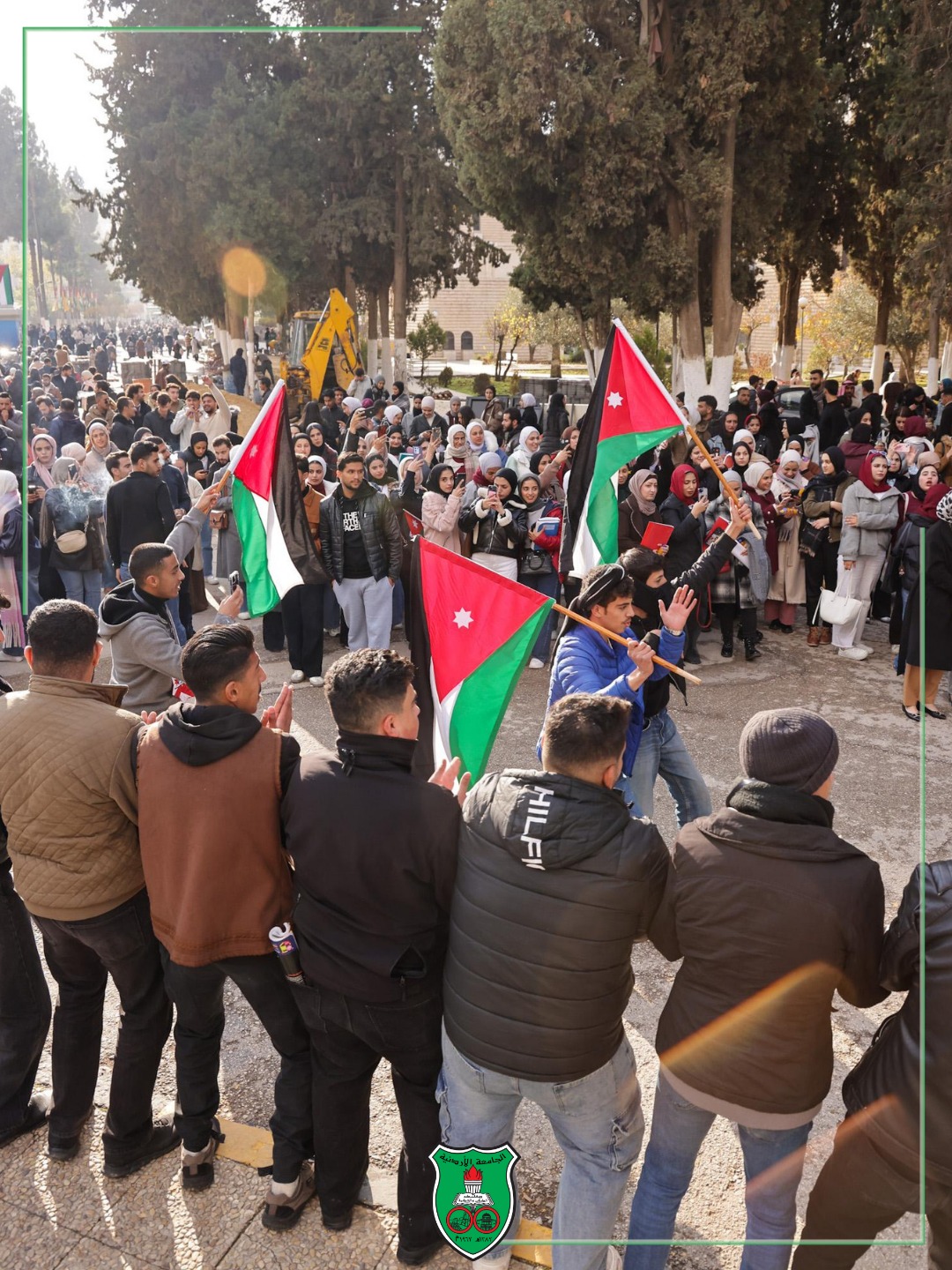 وأقامت الجامعة، ممثّلةً برئاستها وبالتعاون مع اتحاد مجلس الطلبة، فعاليّة وطنيّة أمام برج الساعة، تخلّلها توزيع حلوى الأردن الشهيرة "الكنافة" والعصائر على الحضور من أعضاء الهيئتين التدريسيّة والإداريّة والطلبة، وسط أجواء من الفرح والتفاعل، حفلت بهتافاتٍ ومفرداتٍ من الأغاني الوطنيّة، التي تغنّت بالقيادة الهاشميّة وبالفوز، معبّرين من خلالها عن اعتزازهم بالإنجاز الذي حققه المنتخب، ومؤكِّدين دعمهم الكامل وتشجيعهم للنشامى على مواصلة المشوار بذات العزيمة والهمّة لإحراز لقب البطولة.
