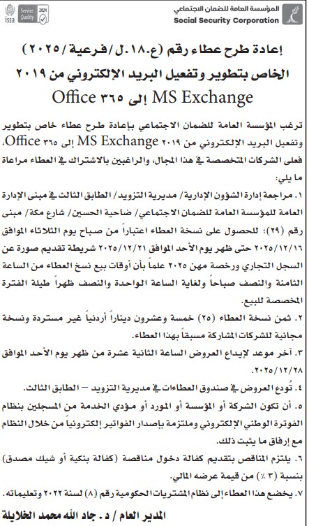 عطاء صادر عن المؤسسة العامة للضمان الاجتماعي