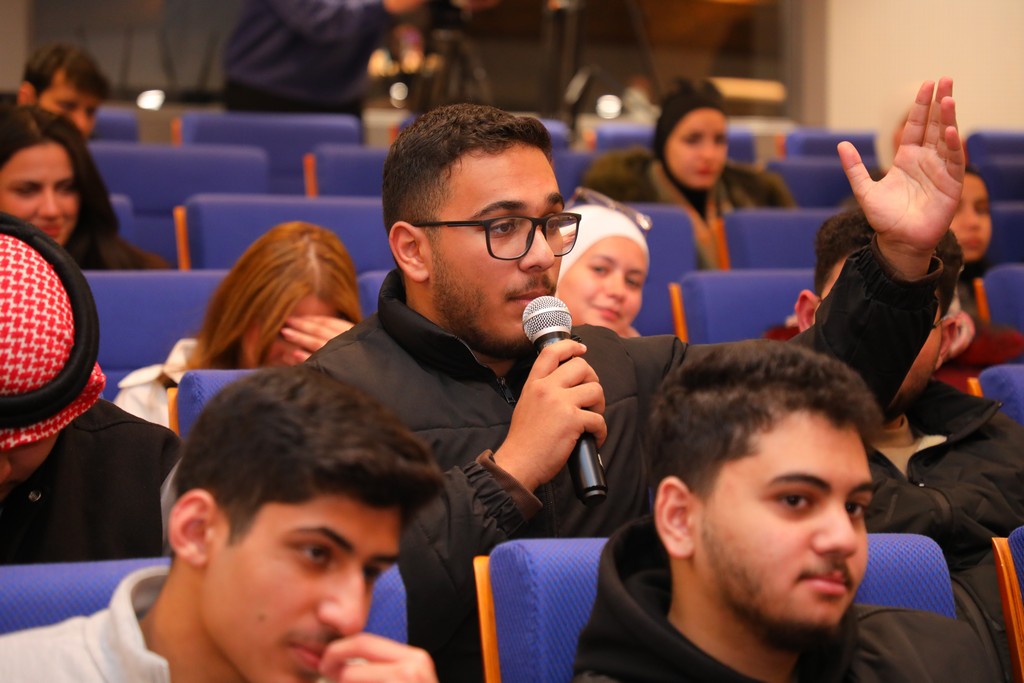 بدوره، أوضح النائب محمد المحارمة أن الحوار المباشر مع طلبة الجامعات يمثل مساحة مهمة تجمع بين الخبرة البرلمانية والطاقة الفكرية للشباب، ويجسد جوهر التحديث السياسي القائم على الحوار بين الأجيال. وأكد أهمية تعزيز مشاركة الشباب في الحياة السياسية والعامة، ضمن رؤية الدولة الأردنية للتحديث الشامل بمساراته السياسية والاقتصادية والإدارية، بما يضع المواطن في قلب عملية التحديث ومحركها الأساسي.