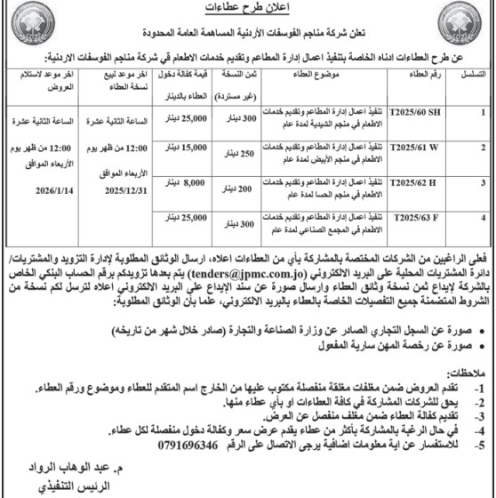 عطاءات صادرة عن شركة مناجم الفوسفات