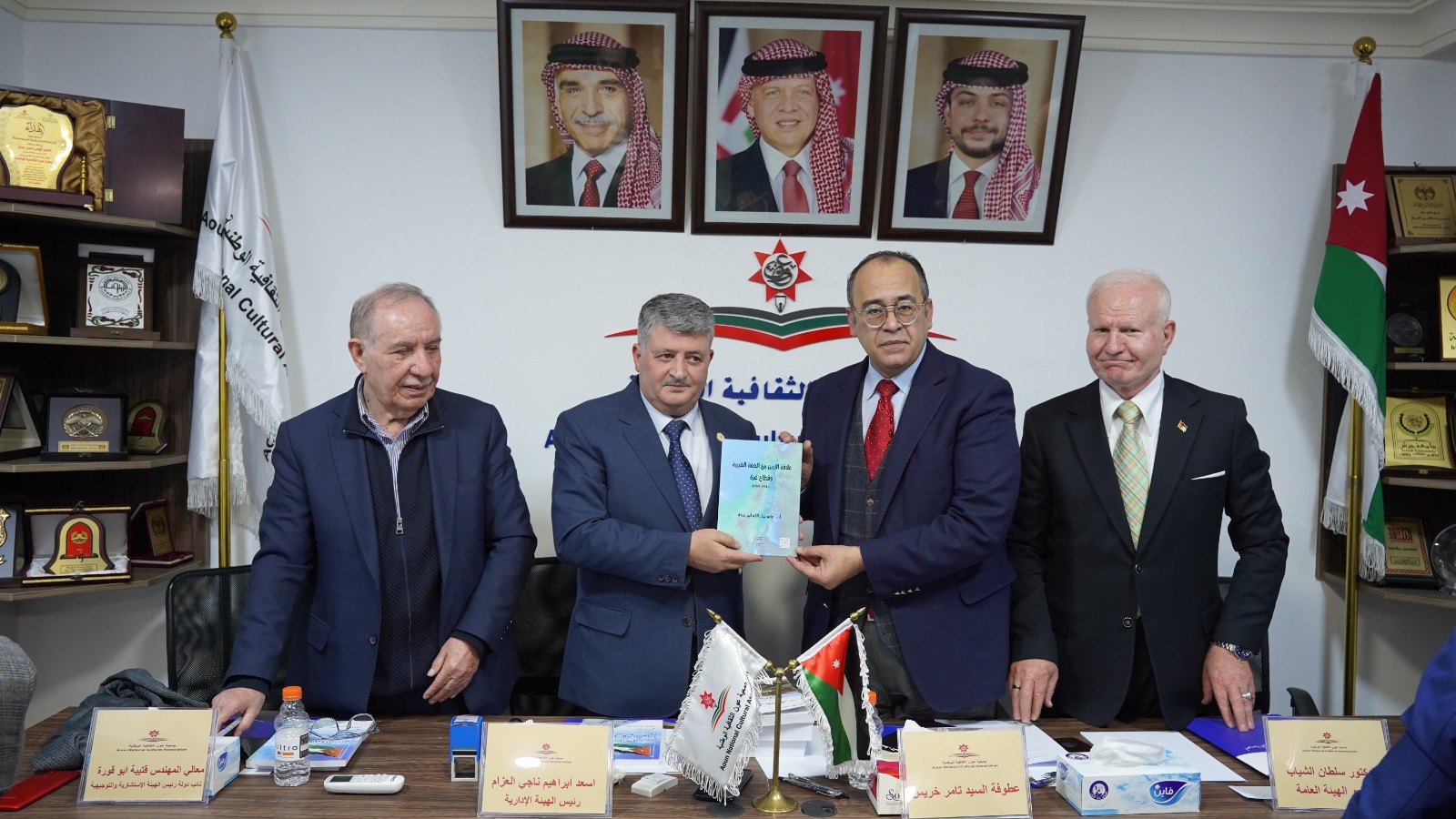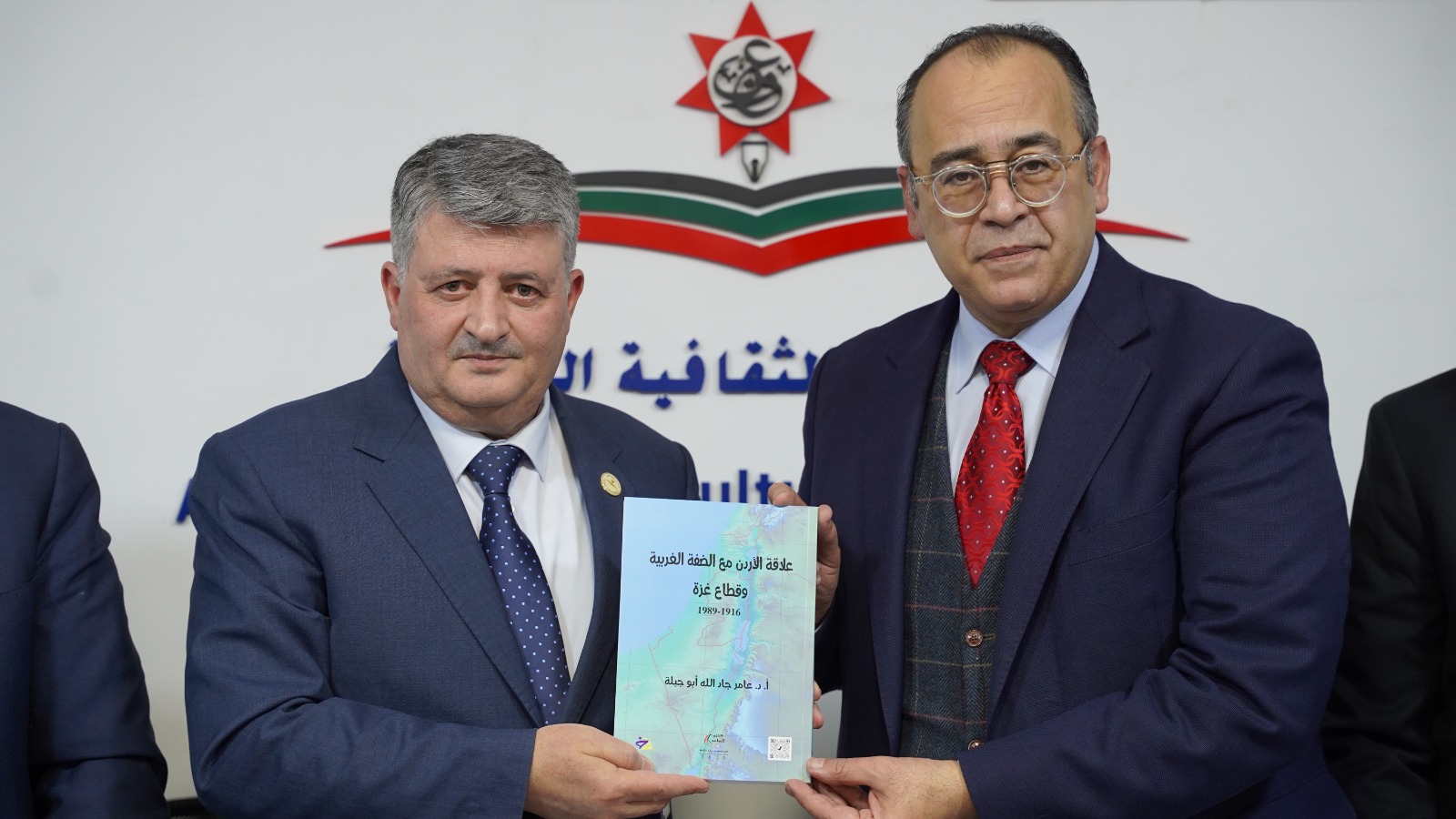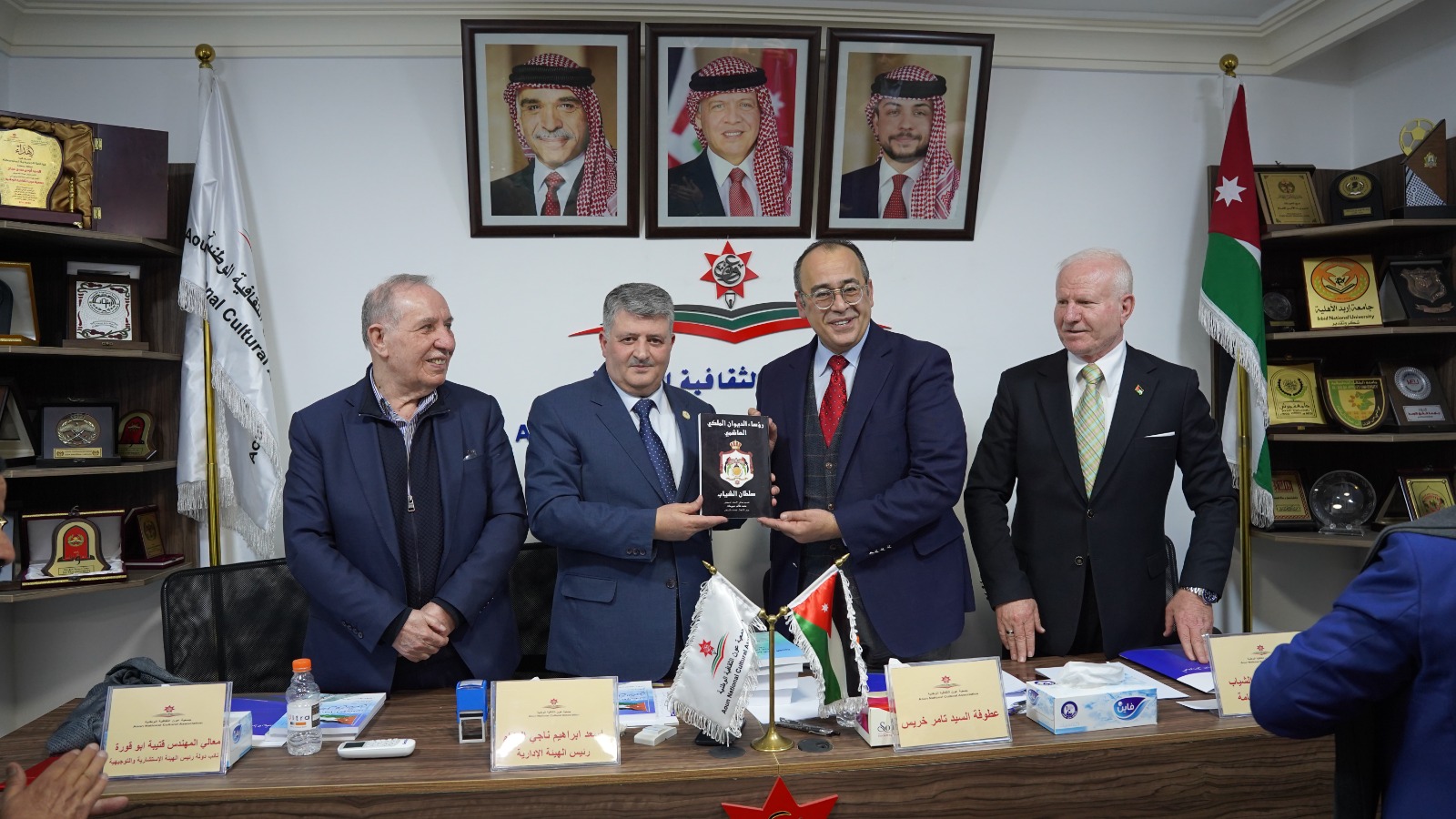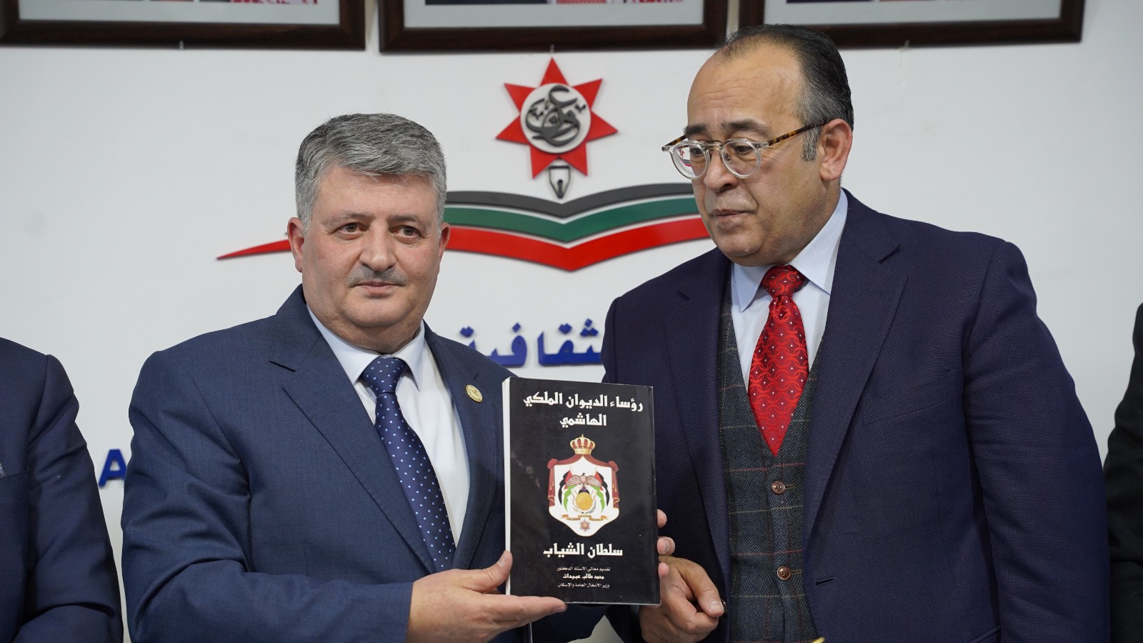 عمون - أقامت جمعية عَون الثقافية الوطنية برعاية المهندس قتيبة ابو قورة نائب دولة رئيس الهيئة الإستشارية والتوجيهية في مقرها الكائن في تلاع العلي-شارع سعيد التميمي-فيلا رقم (23) حفل إشهار كتاب عضو الجمعية الدكتور سلطان محمود الشياب مدير عام فرع إقليم الشمال بعنوان: "من جيل المؤسسين....فضل فالح الدلقموني"
