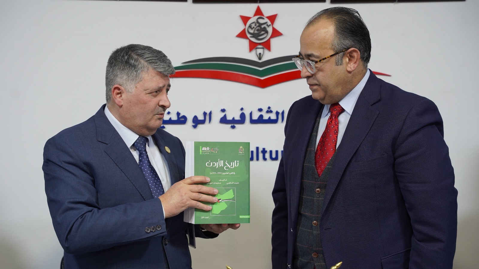 وفي نهاية اللقاء قدم رئيس الهيئة الإدارية اسعد ابراهيم ناجي العزام للسيد تامر محمد تيسير خريس نسخة من موسوعة تاريخ الأردن في القرن العشرين من عام 1900-1995 ونسخة أخرى عن كتاب غربيون في بلاد العرب.إحدى مقتنيات مكتبة جمعية عَون الثقافية الوطنية (مكتبة المؤرخ سليمان الموسى).ونسخة عن كتاب الدكتور سلطان الشياب مدير عام فرع إقليم الشمال بعنوان (رؤساء الديوان الملكي الهاشمي) ونسخة أخرى عن كتاب الأستاذ الدكتور عامر ابو جبلة مدير مركز عَون للدراسات والأبحاث بعنوان (علاقة الأردن مع الضفة الغربية وقطاع غزة من عام 1916-1989)