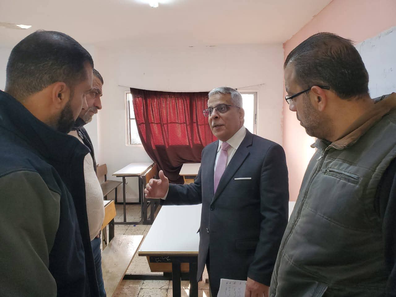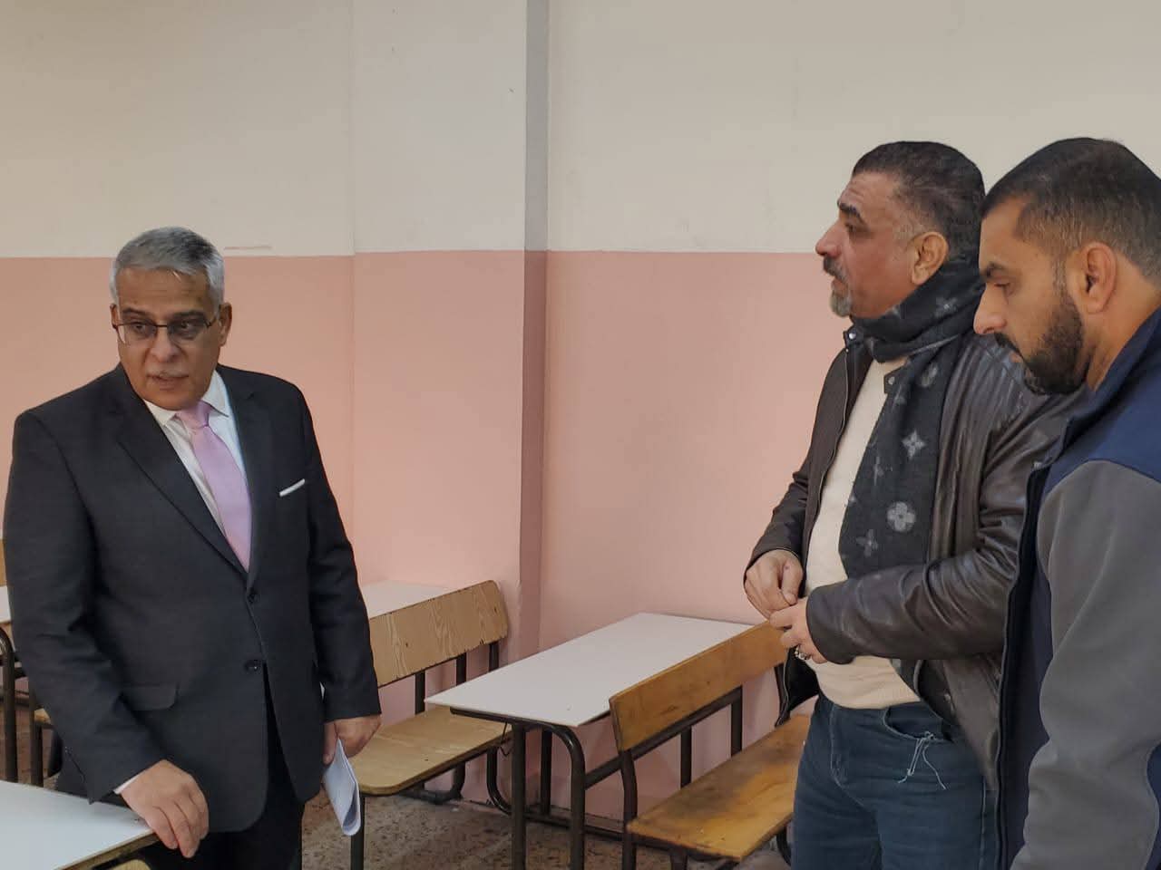 واطّلع خلال الجولة على الاستعدادات الفنية والإدارية في المراكز الامتحانية، ومدى الالتزام بالتعليمات الناظمة للامتحانات، مؤكداً جاهزية القاعات الامتحانية من حيث الإضاءة والتهوية والمقاعد، إلى جانب استكمال أعمال الصيانة اللازمة، بما يضمن سير العملية الامتحانية بسهولة وانتظام.