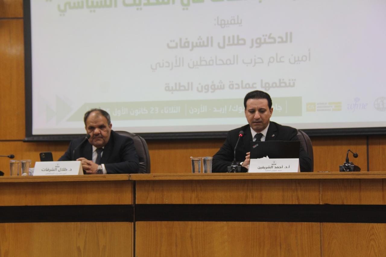 ودعا الشرفات الشباب إلى الانضواء في حزب المحافظين الأردني القادر بفكره وتطلعاته على خدمة الشباب والوطن، والجدير بالذكر أن هذه المحاضرة تأتي ضمن خطط وبرامج حزب المحافظين للوصول إلى الشباب في كل الجامعات وكليّات المجتمع ومؤسسات المجتمع المدني.