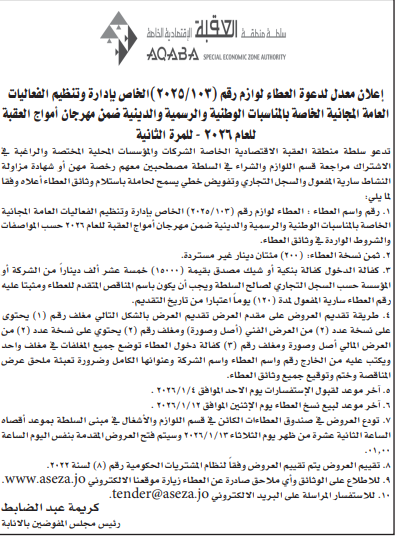 عطاء صادر عن سلطة منطقة العقبة