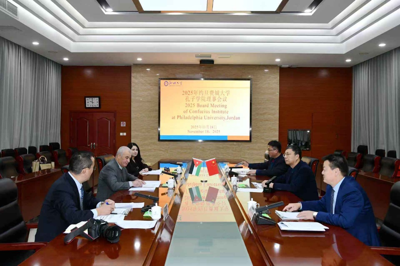 كما شارك الوفد في اجتماع مجلس إدارة معهد كونفوشيوس في جامعة فيلادلفيا، الذي عُقد في جامعة لياوتشينج الشريكة في مقاطعة شاندونغ الصينية، حيث جرى بحث استمرارية برنامج بكالوريوس اللغة الصينية، ومناقشة استحداث برنامج ماجستير، بما يعزز التعاون الأكاديمي بين الجانبين.