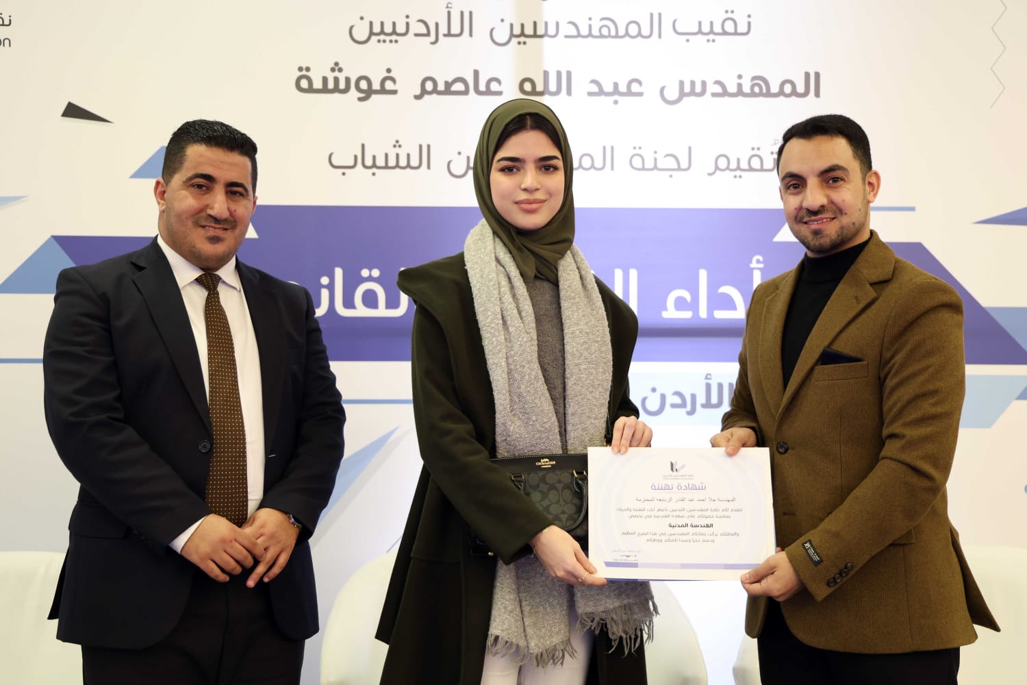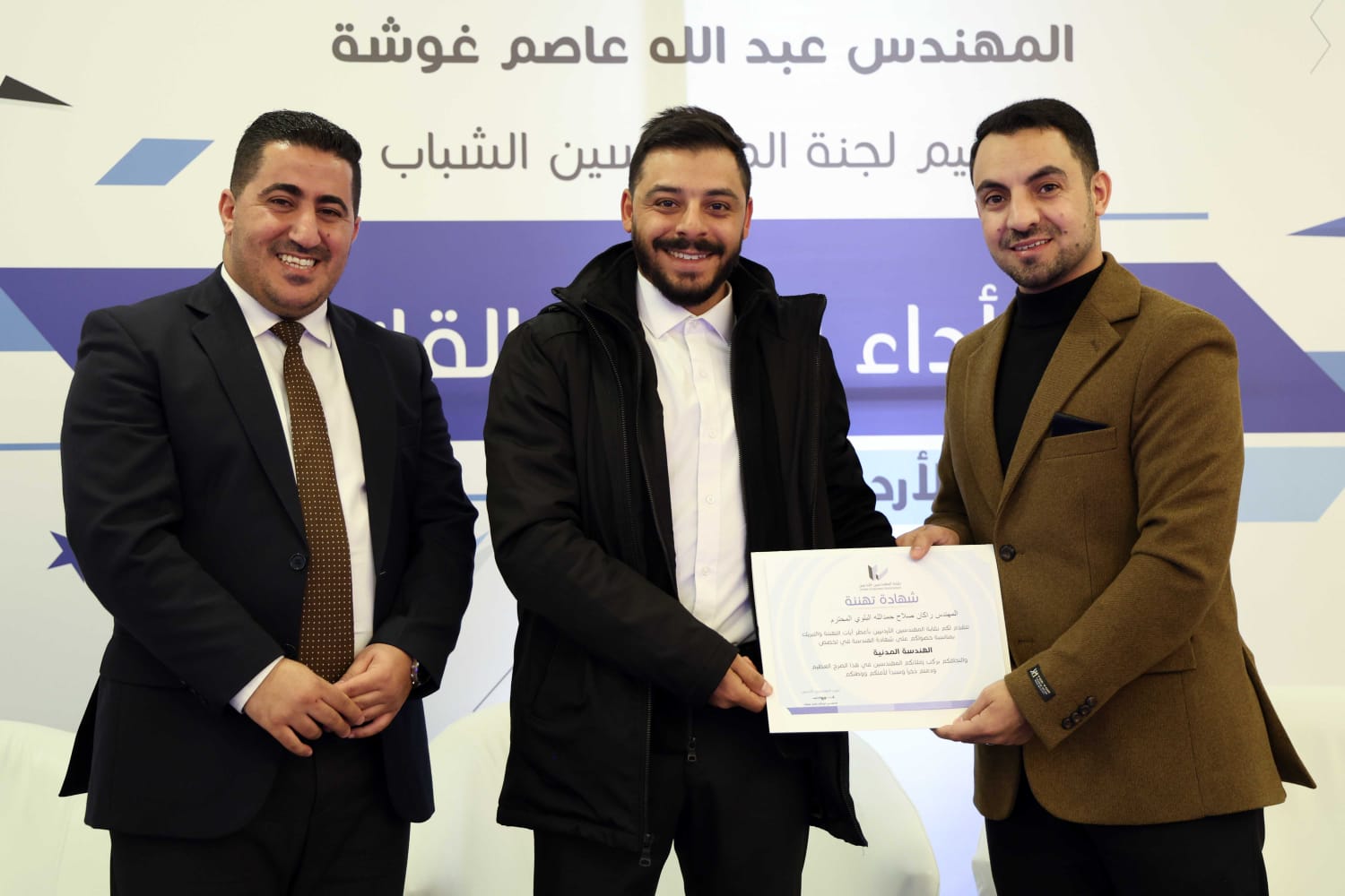 وردد المهندسين الجدد القسم القانوني، الذي تلاه عضو المجلس محمد الحباشنة، قبل أن يتسلموا بطاقات العضوية وشهاداتهم إيذانا بانطلاق رحلتهم المهنية تحت مظلة النقابة.