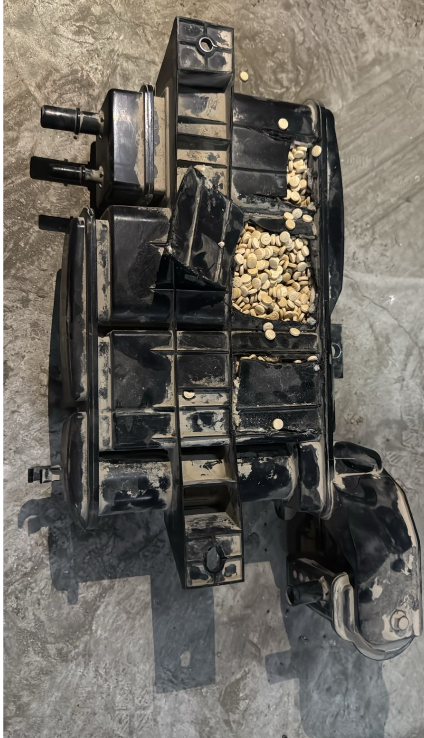 فيما وردت كذلك في القضية الأخرى معلومات تفيد بإخفاء مجهولين كمية من الحبوب المخدرة في منطقة صحراوية شمالية، حيث تحركت فرق التفتيش وبمسح المنطقة المعنية في البلاغ عُثر على ماتور مركبة ملقى في تلك المنطقة وبتفتيشه عُثر على 20 ألف حبّة مخدرة بداخله وما زال التحقيق جارياً في القضية لتحديد المتورطين فيها.