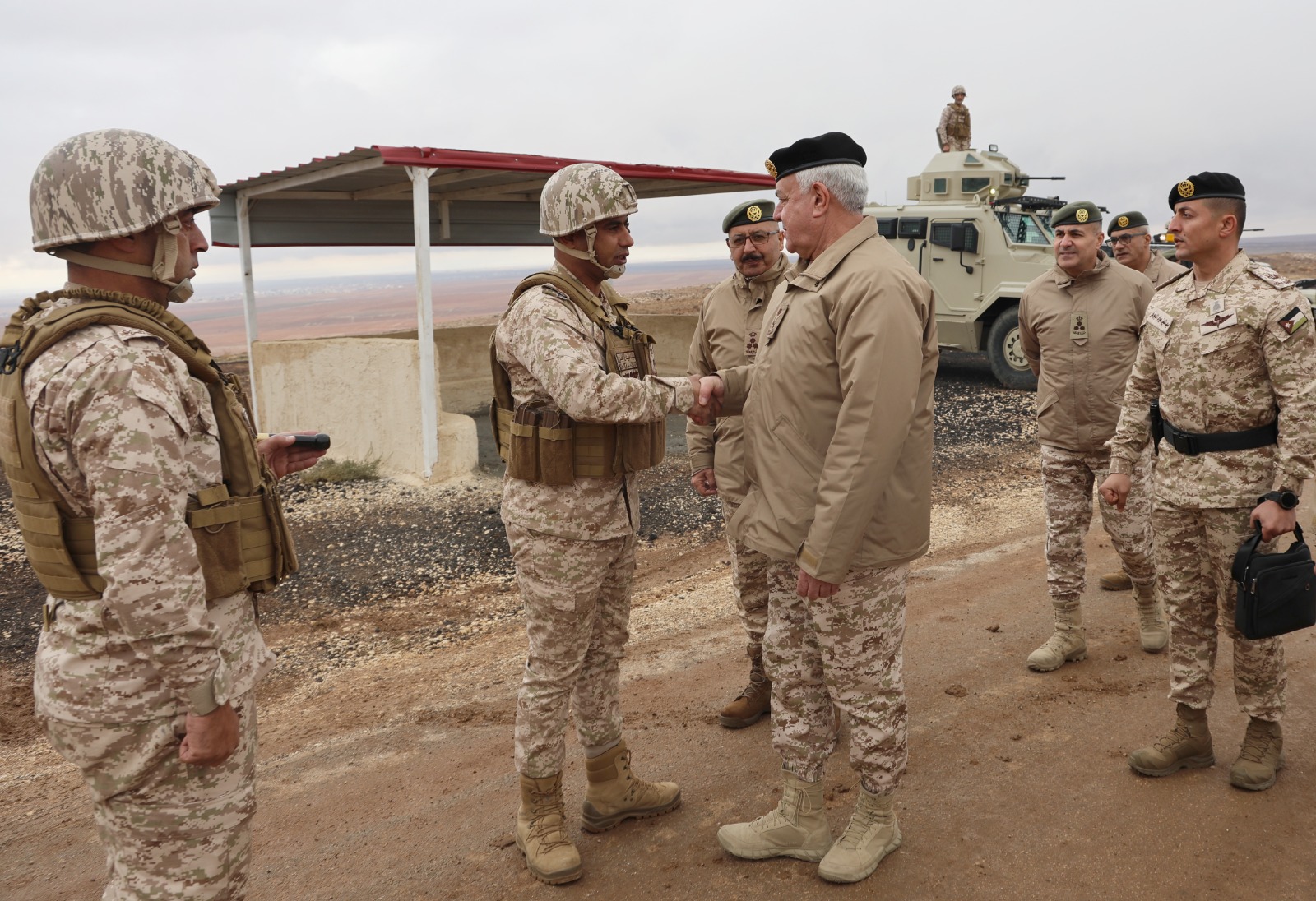 عمون - تفقد رئيس هيئة الأركان المشتركة اللواء الركن يوسف أحمد الحنيطي، اليوم الأحد، عدداً من وحدات القوات المسلحة الموكلة بحفظ أمن وحماية الحدود والصنوف التي تسندها، في إطار المتابعة الميدانية المستمرة لمستوى الجاهزية العملياتية، والاطلاع على سير تنفيذ الواجبات، في ظل الأحداث الأخيرة وظروف الطقس الحالية.