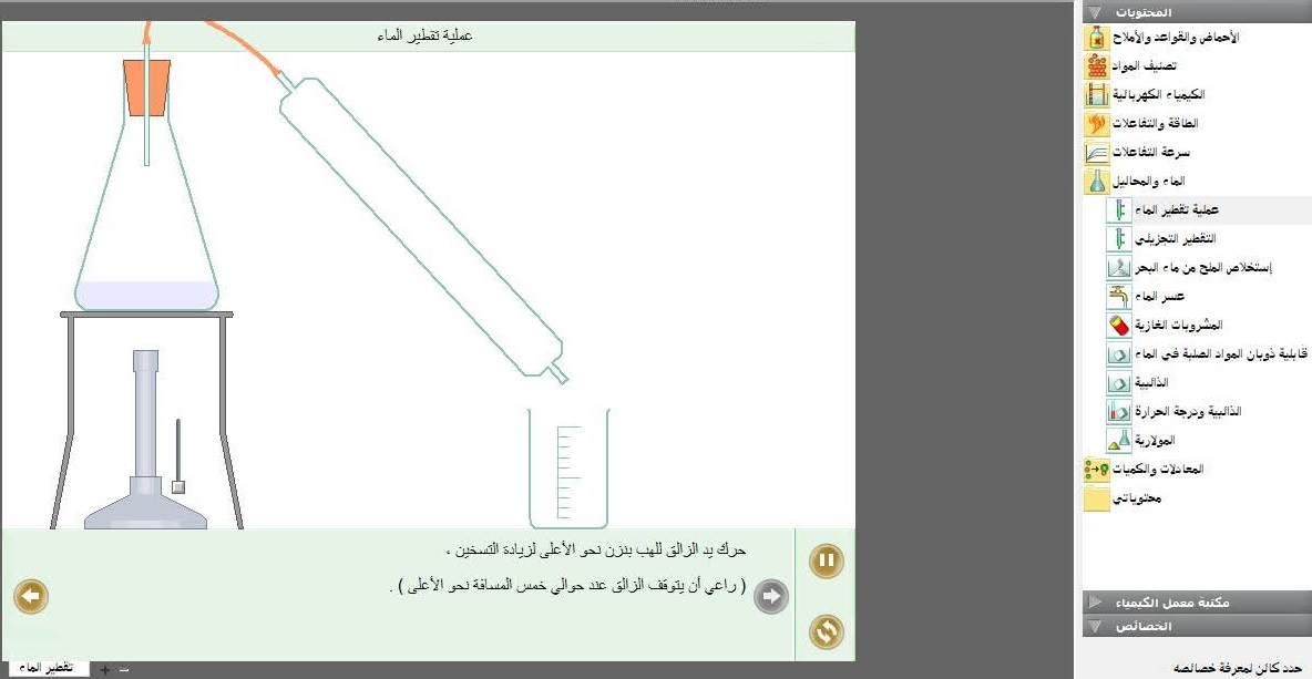 محاكاة رقمية لتجربة تقطير الماء في مختبر علوم مدرسة النهضة الثانوية