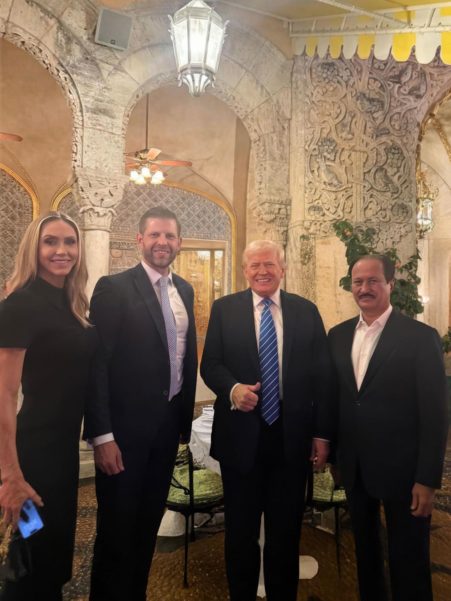 عمون - نشر رجل الاعمال الاماراتي حسين سجواني، صورة برفقة الرئيس الأمريكي دونالد ترامب، وأفراد عائلته إريك ولارا ترامب. |