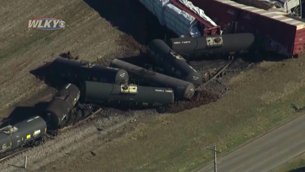 تسرب سائل الكبريت بعد خروج قطار عن سكته في كنتاكي الأمريكية