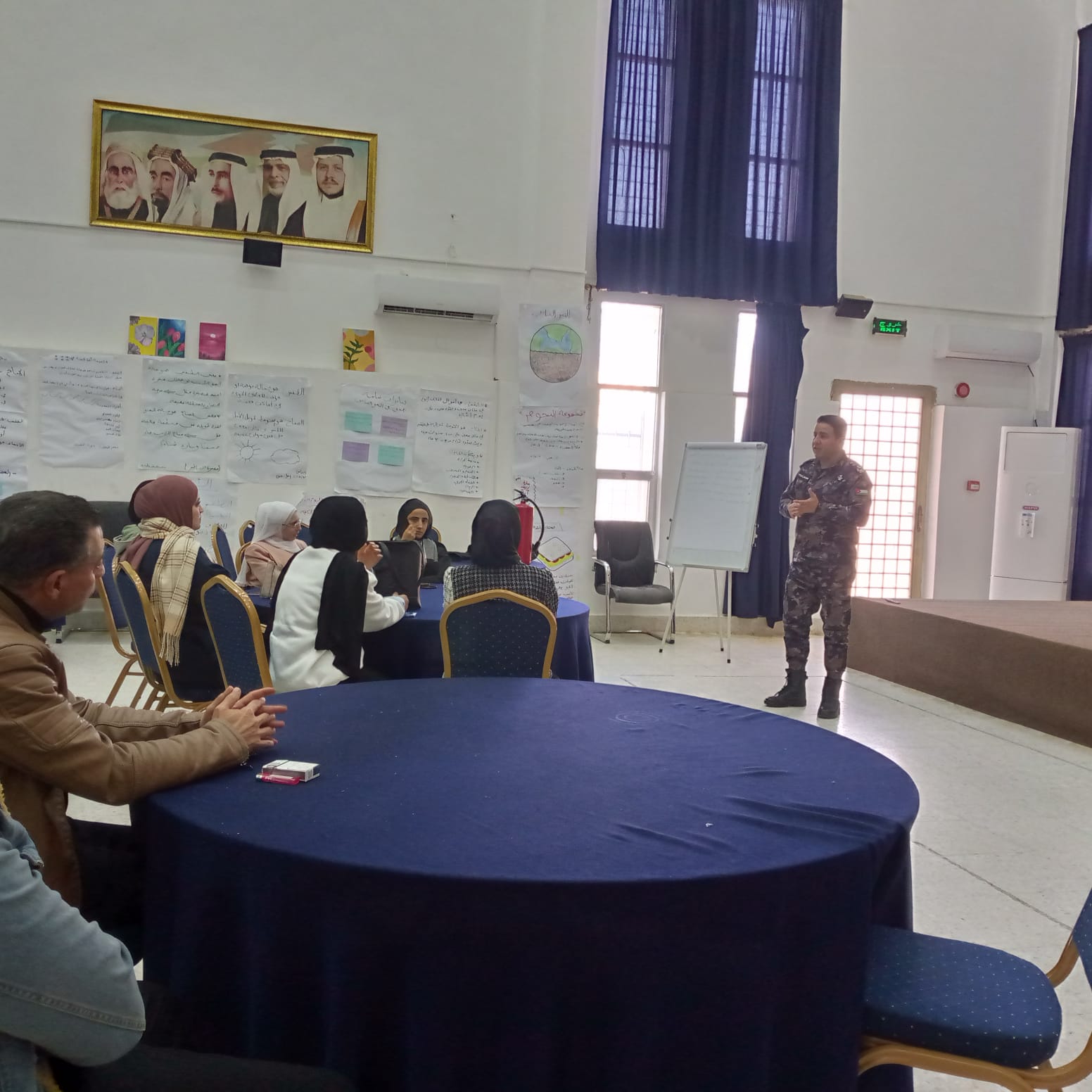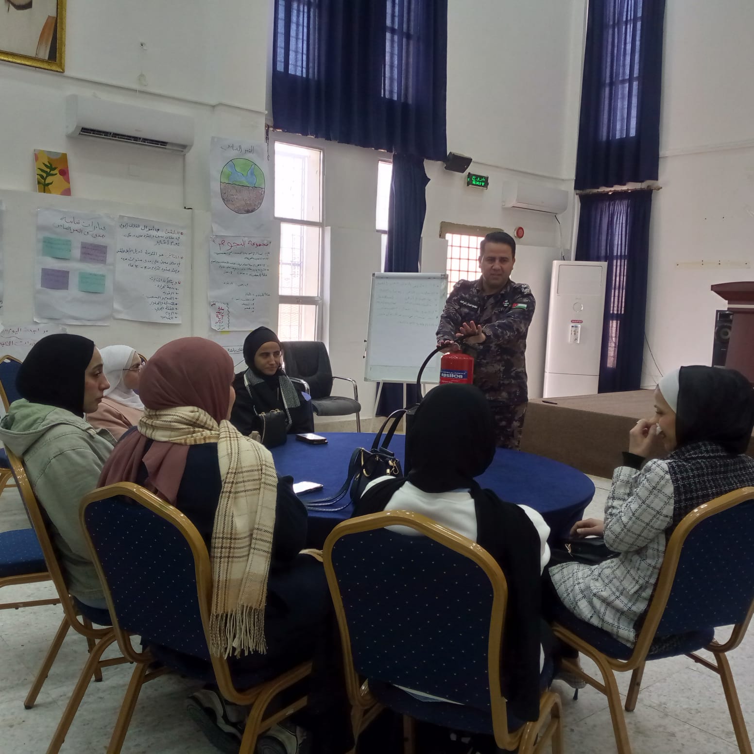 وتحدث الملازم محمود بني حمد حول الإرشادات الواجب اتباعها عند استخدام المدافئ، موضحاً أبرز أسباب الحوادث المرتبطة بها، وسبل الوقاية من مخاطر الحرائق والاختناق، مؤكداً أهمية التهوية الجيدة والفحص الدوري للمدافئ.