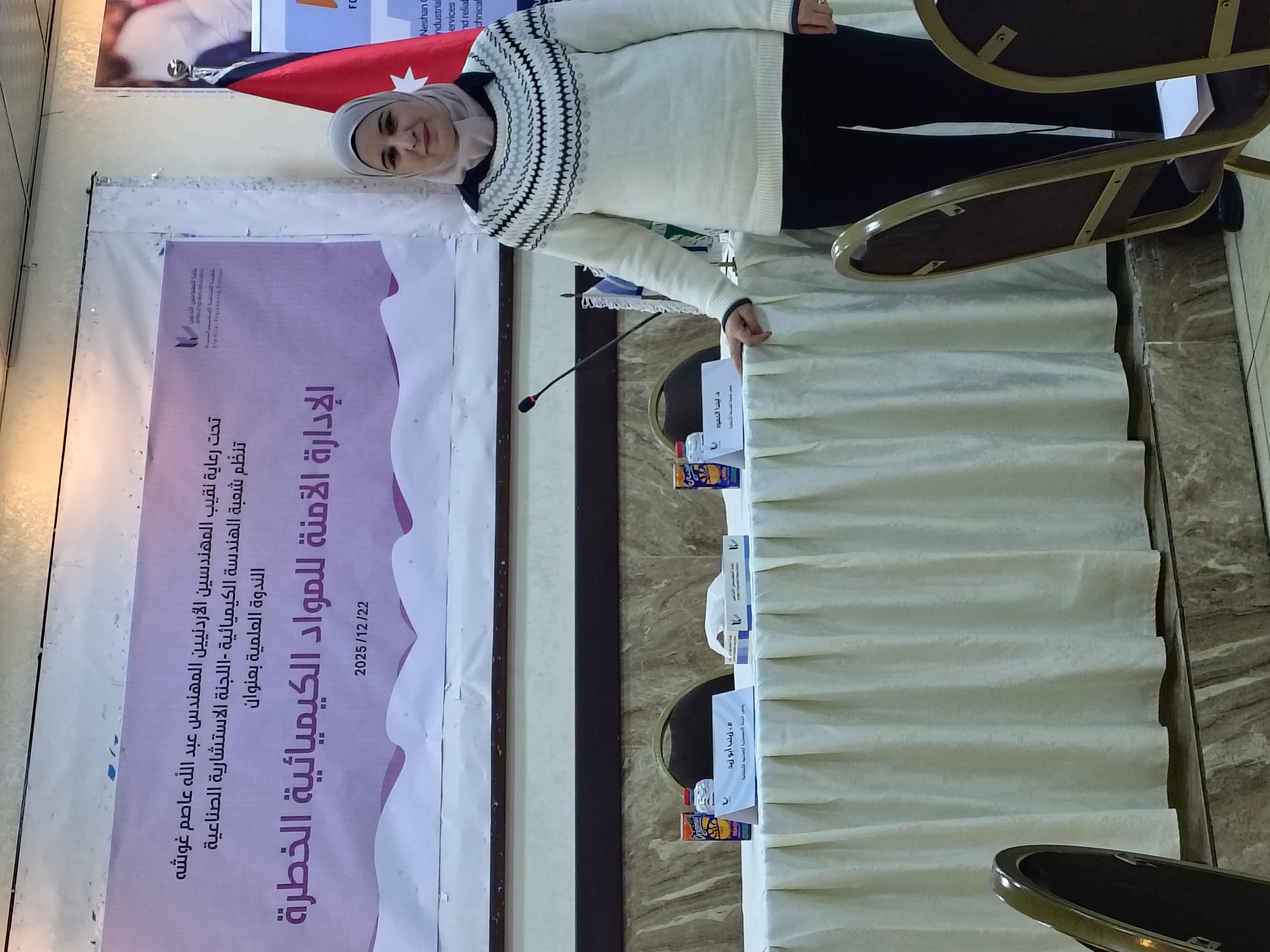 عمون - في إطار حرص جامعة عمان العربية على تعزيز الحضور في الفعاليات العلمية المتخصصة، وتأكيد دورها في دعم قضايا الصحة والسلامة المهنية، وحماية الإنسان والبيئة، بما يواكب التطورات العلمية والمهنية في مجالات التعامل مع المواد الكيميائية الخطرة، شاركت المهندسة عائشة الجراح من كلية الصيدلة في فعاليات اليوم العلمي الذي نظمته نقابة المهندسين الأردنيين بعنوان: "الإدارة الآمنة للمواد الكيميائية الخطرة ودور بطاقة البيان في الوقاية والحماية".