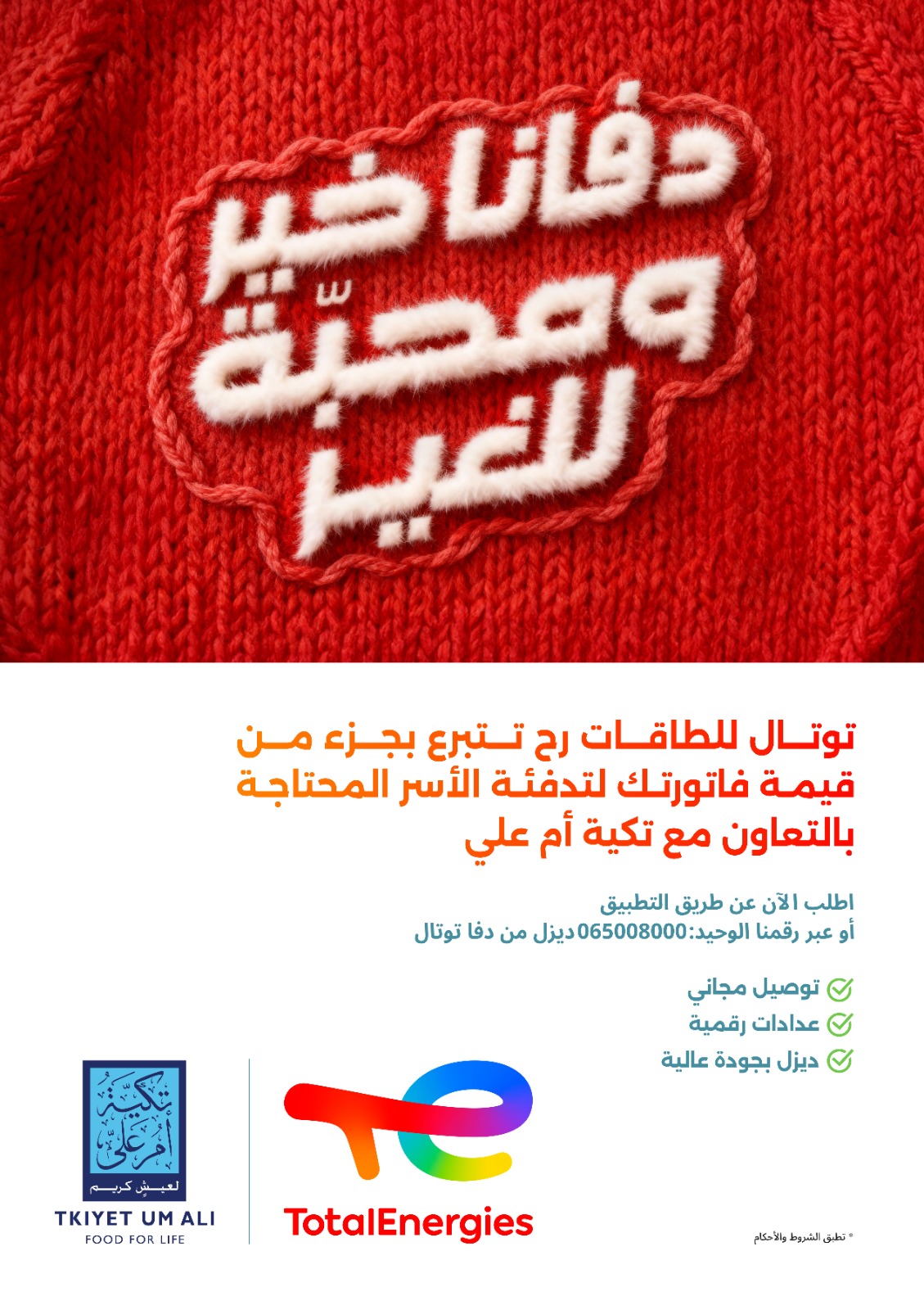 ومن خلال حملة "دفا"، تواصل "توتال للطاقات" نهجها في الدمج بين توفير حلول التدفئة المنزلية الموثوقة، وبين البعد الإنساني العميق، مما يعكس التزامها الجاد بالمسؤولية المجتمعية والشراكة الفاعلة، وحرصها على نشر "الدفء المشترك" طوال موسم الشتاء.