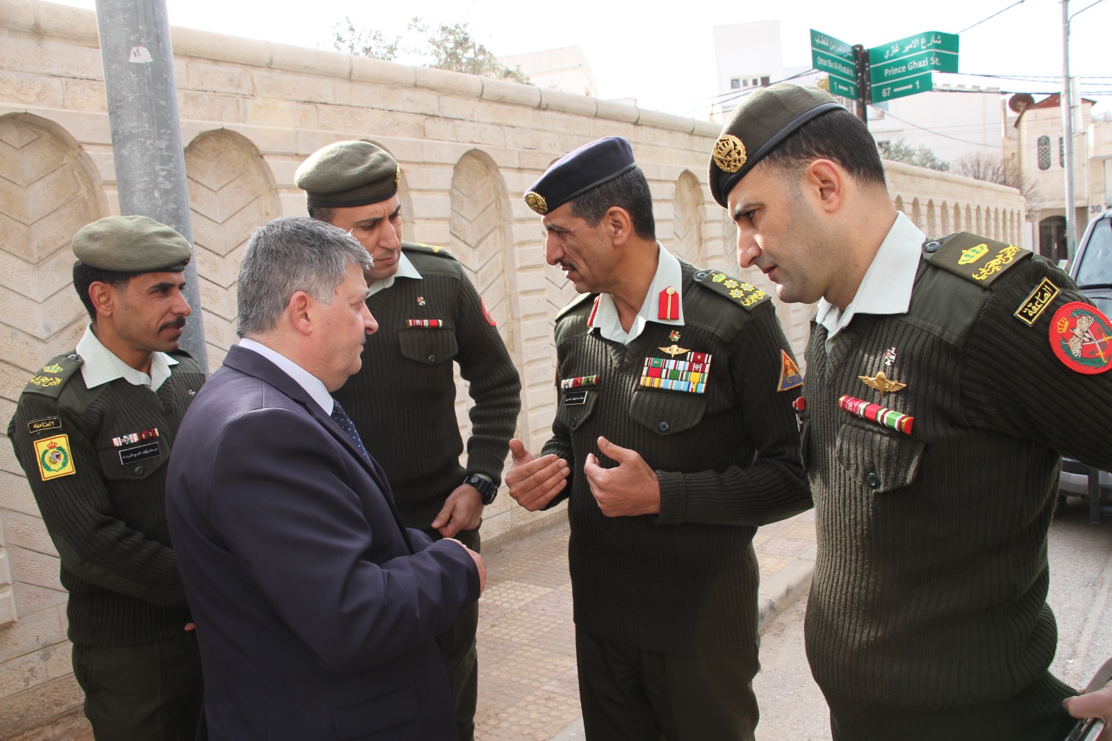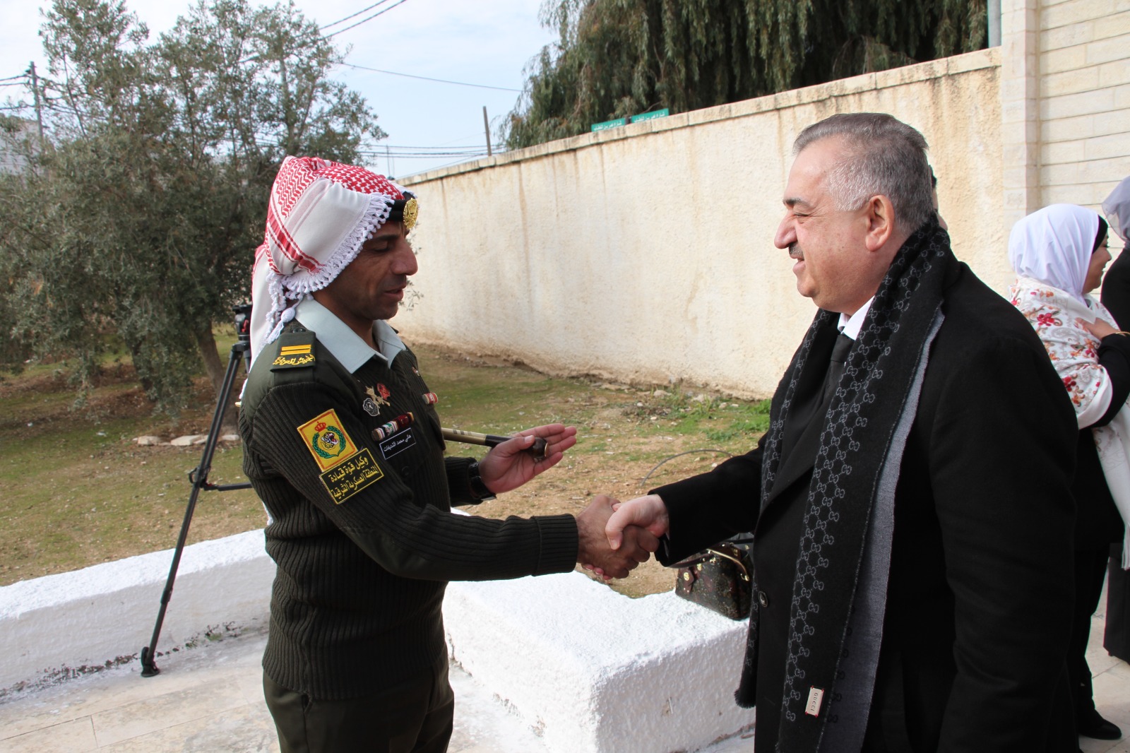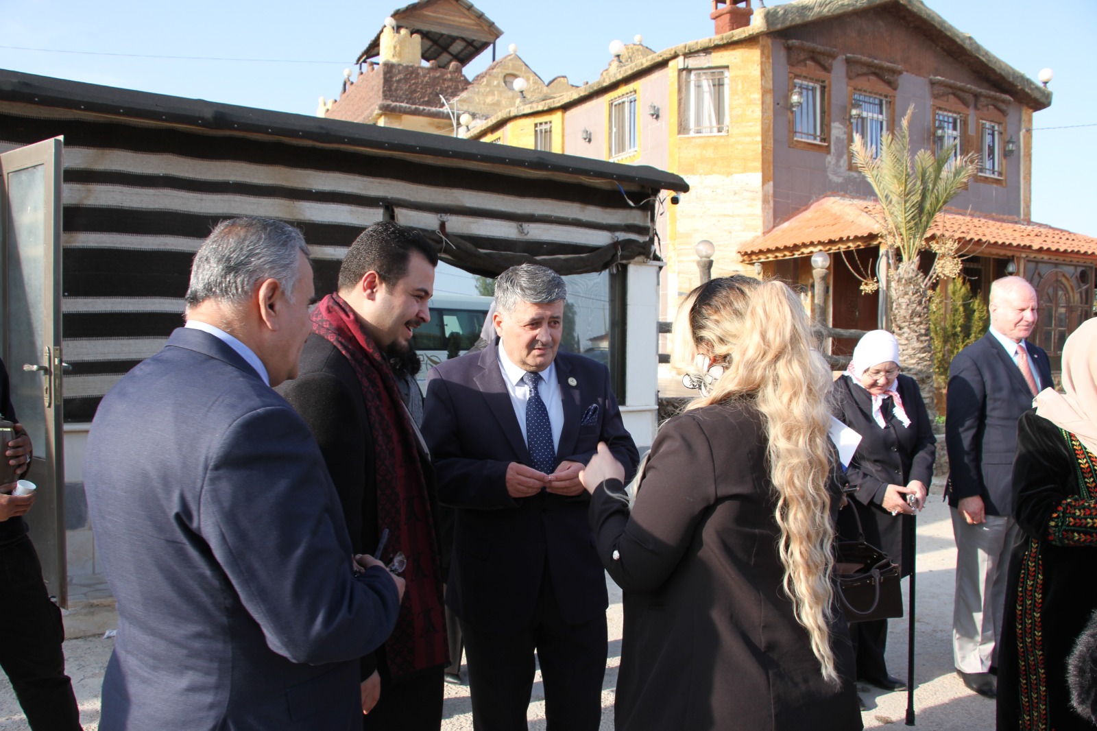 وكان في استقبال السفير والوفد المرافق قائد مدفعية المنطقة العسكرية الشرقية،والسيد اسعد ابراهيم ناجي العزام رئيس هيئة إدارة جمعية عَون الثقافية الوطنية واللواء داود باشا هاكوز نائب رئيس الهيئة الإدارية وعدد من أعضاء هيئات ولجان الجمعية.