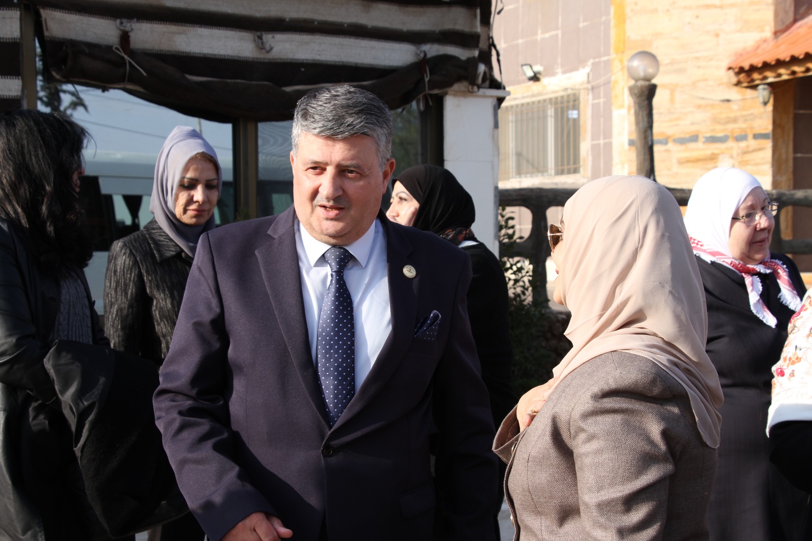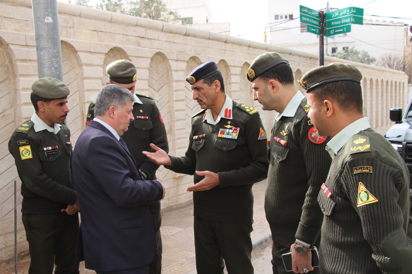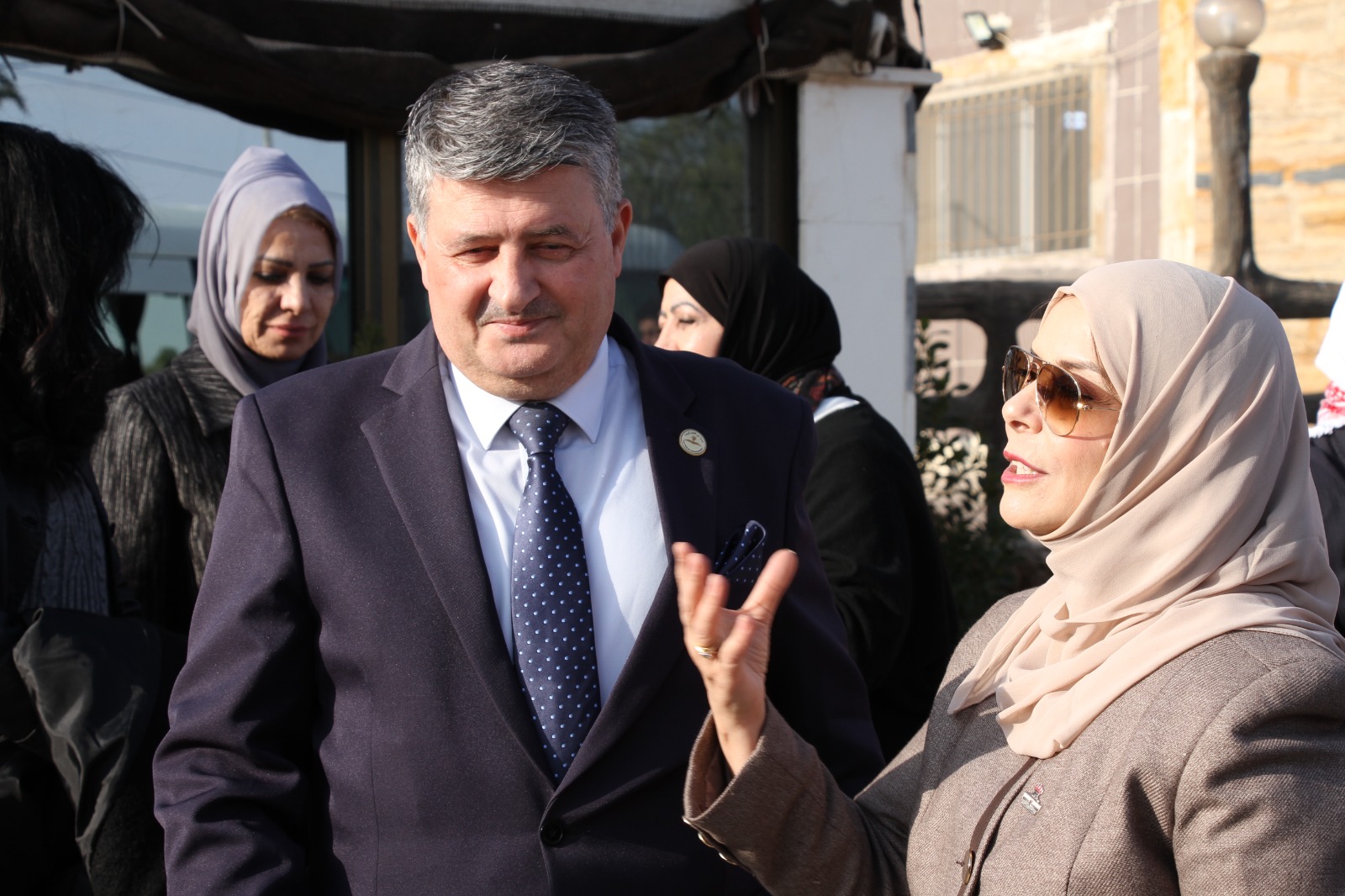 وكان في استقبال السفير والوفد المرافق قائد مدفعية المنطقة العسكرية الشرقية،والسيد اسعد ابراهيم ناجي العزام رئيس هيئة إدارة جمعية عَون الثقافية الوطنية واللواء داود باشا هاكوز نائب رئيس الهيئة الإدارية وعدد من أعضاء هيئات ولجان الجمعية.