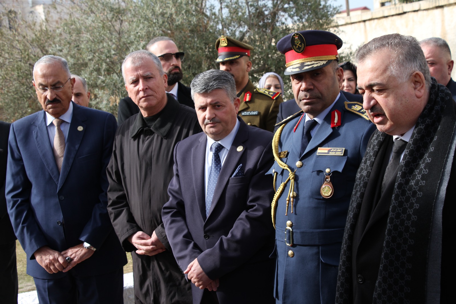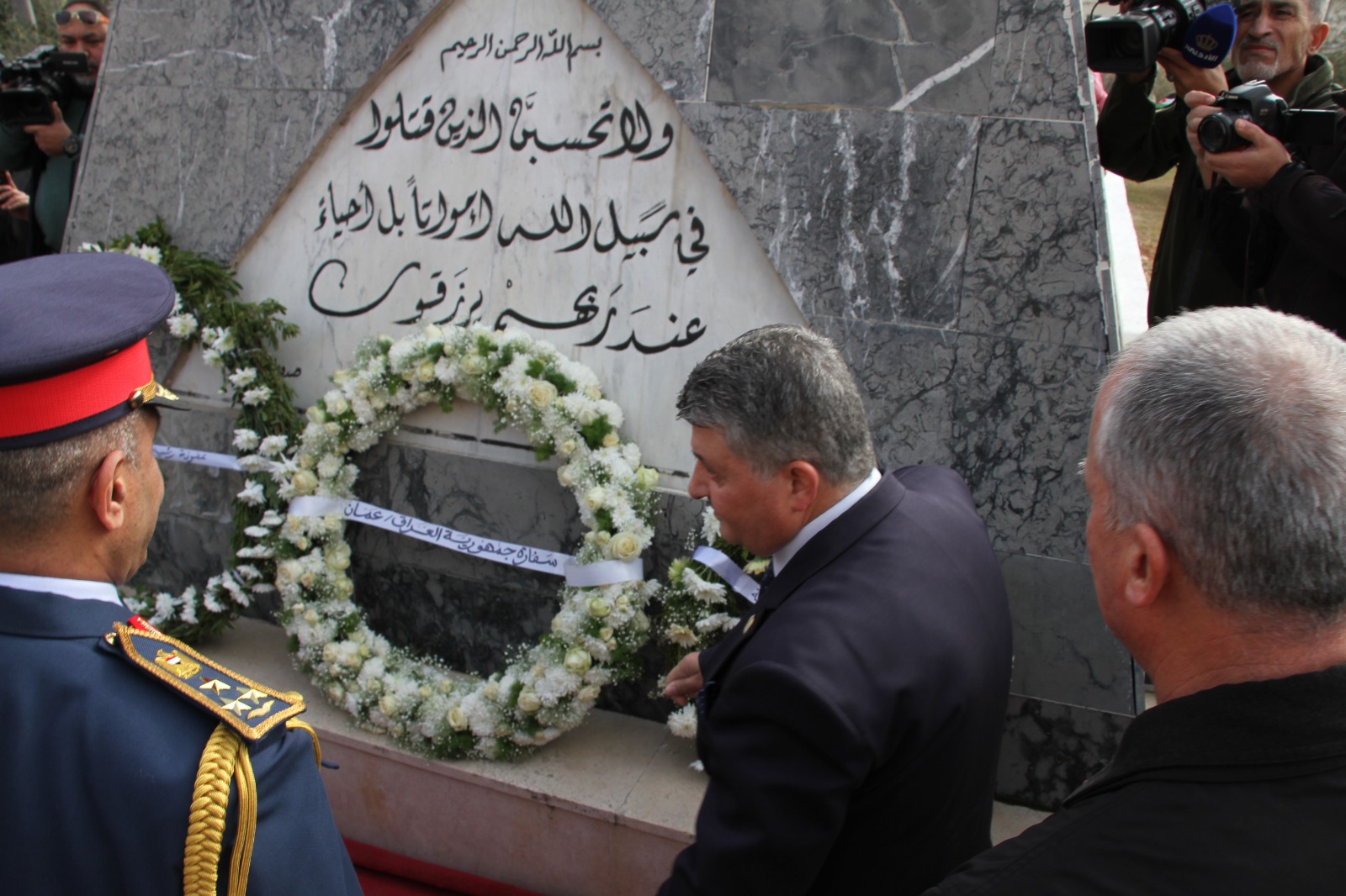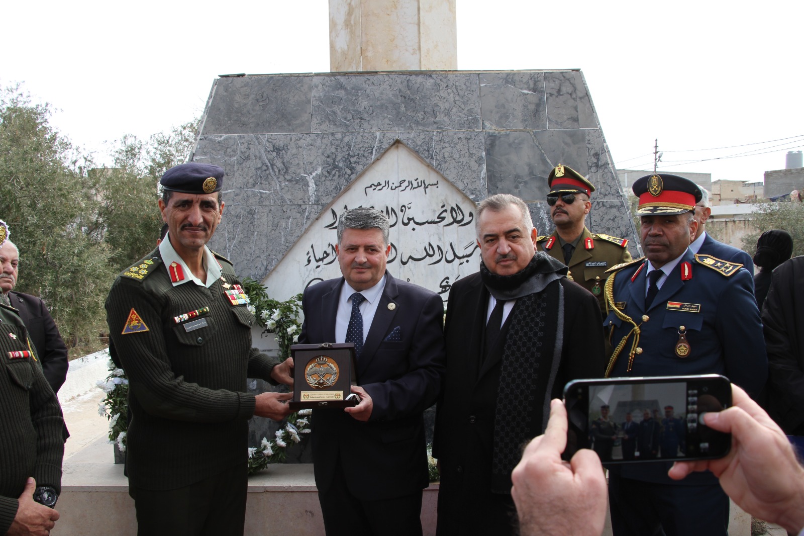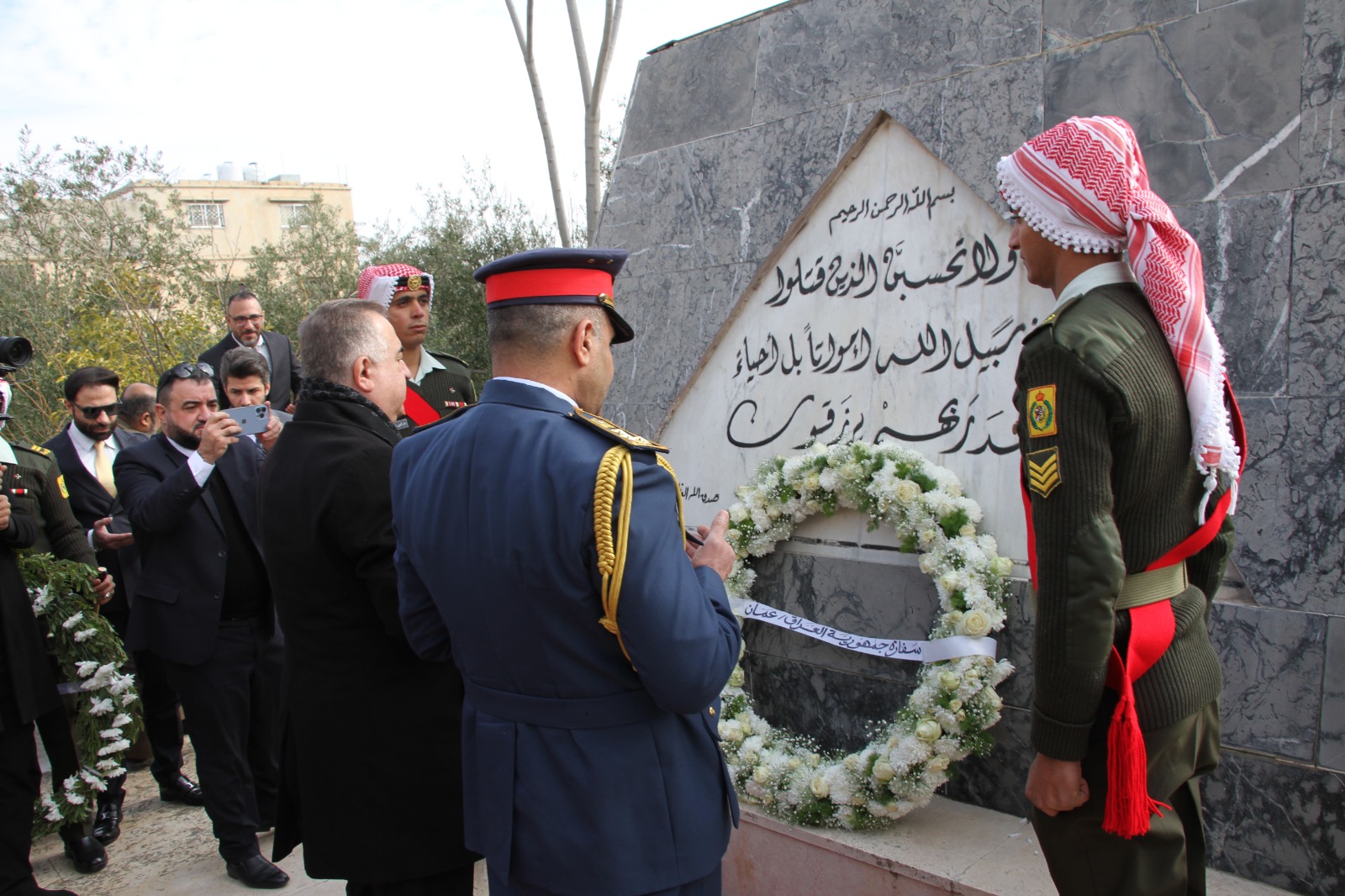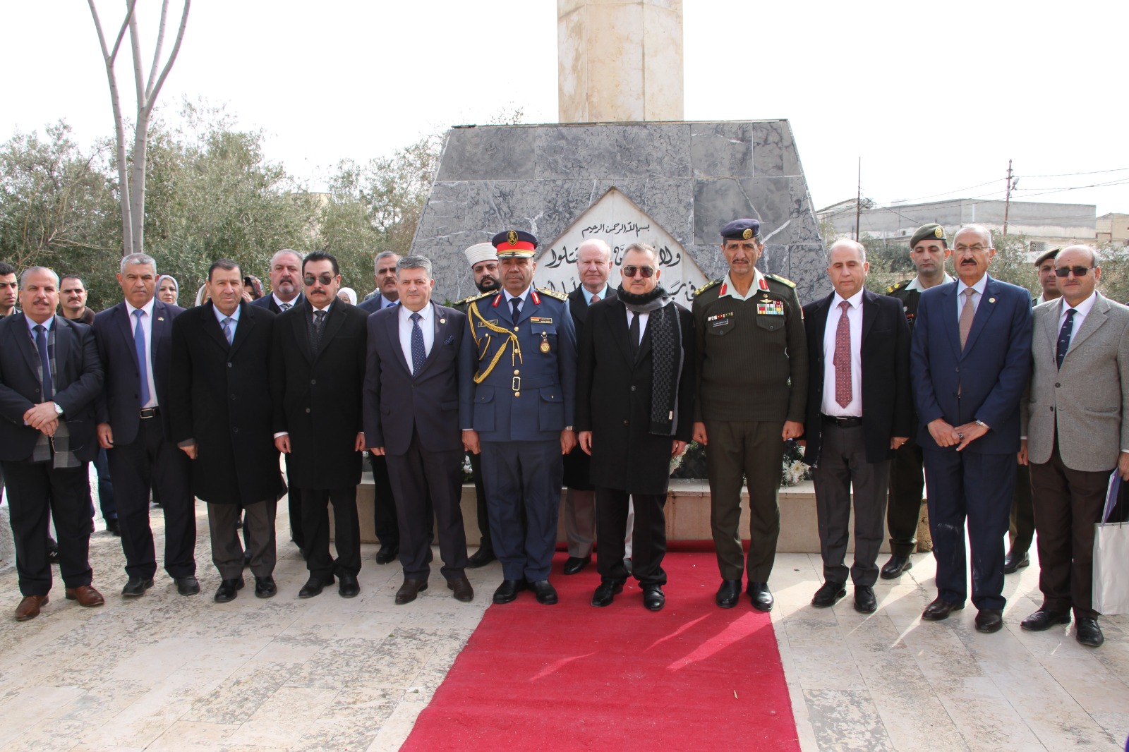 حيث جرت مراسم رسمية مهيبة،وُضعت خلالها أكاليل من الزهور على الصرح التذكاري لشهداء الجيش العراقي،مقدمة من سفارة جمهورية العراق،ورئاسة هيئة الأركان المشتركة،وجمعية عَون الثقافية الوطنية،فيما عزف الصدّاحون لحن الرجوع الأخير،وقرأ الحضور سورة الفاتحة على أرواح الشهداء الطاهرة،في أجواء سادها الخشوع والإجلال لتضحيات الأبطال.