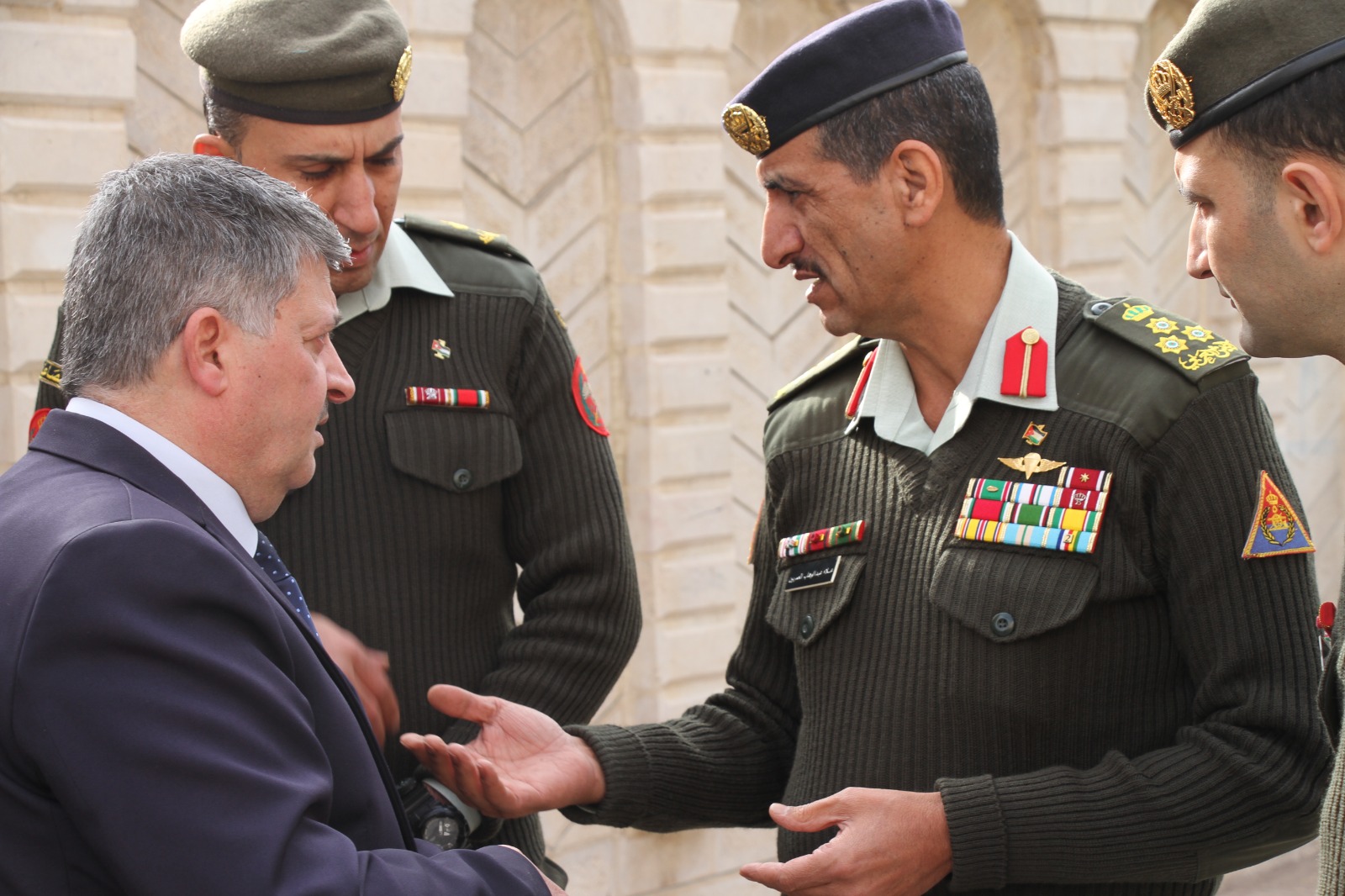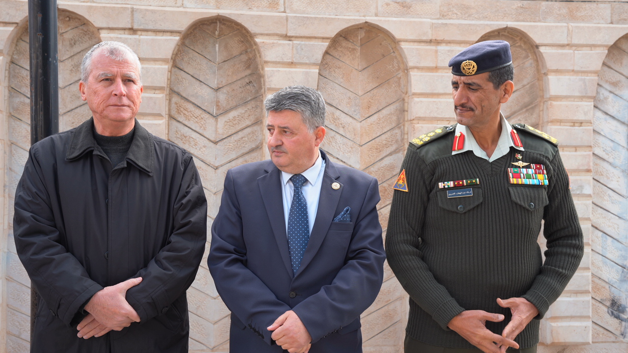 كما تحدث الملحق العسكري العراقي في الممملكة الأردنية الهاشمية العميد المهندس فراس موحي جاسم مترحماً على أرواح شهداء الجيش العراقي ومهنئاً بالذكرى ال (105) لتأسيس الجيش العراقي ومقدماً شكره وعرفانه للأردن (قيادة،حكومة،جيشاً،وشعباً) على مشاركة السفارة العراقية والملحقية العسكرية بهذه الزيارة.