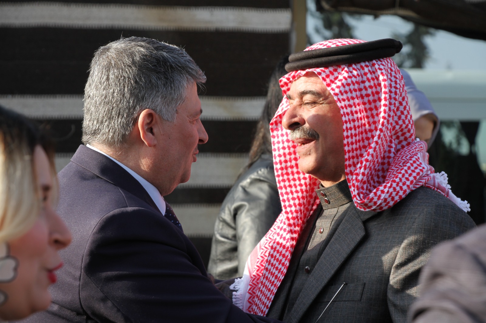 وتعبيراً منه عن إعتزازه وتقديره لهذه الزيارة الكريمة قدم الشيخ ابو دلبوح للسفير العراقي العباءة الأردنية وشماغ النشامى.