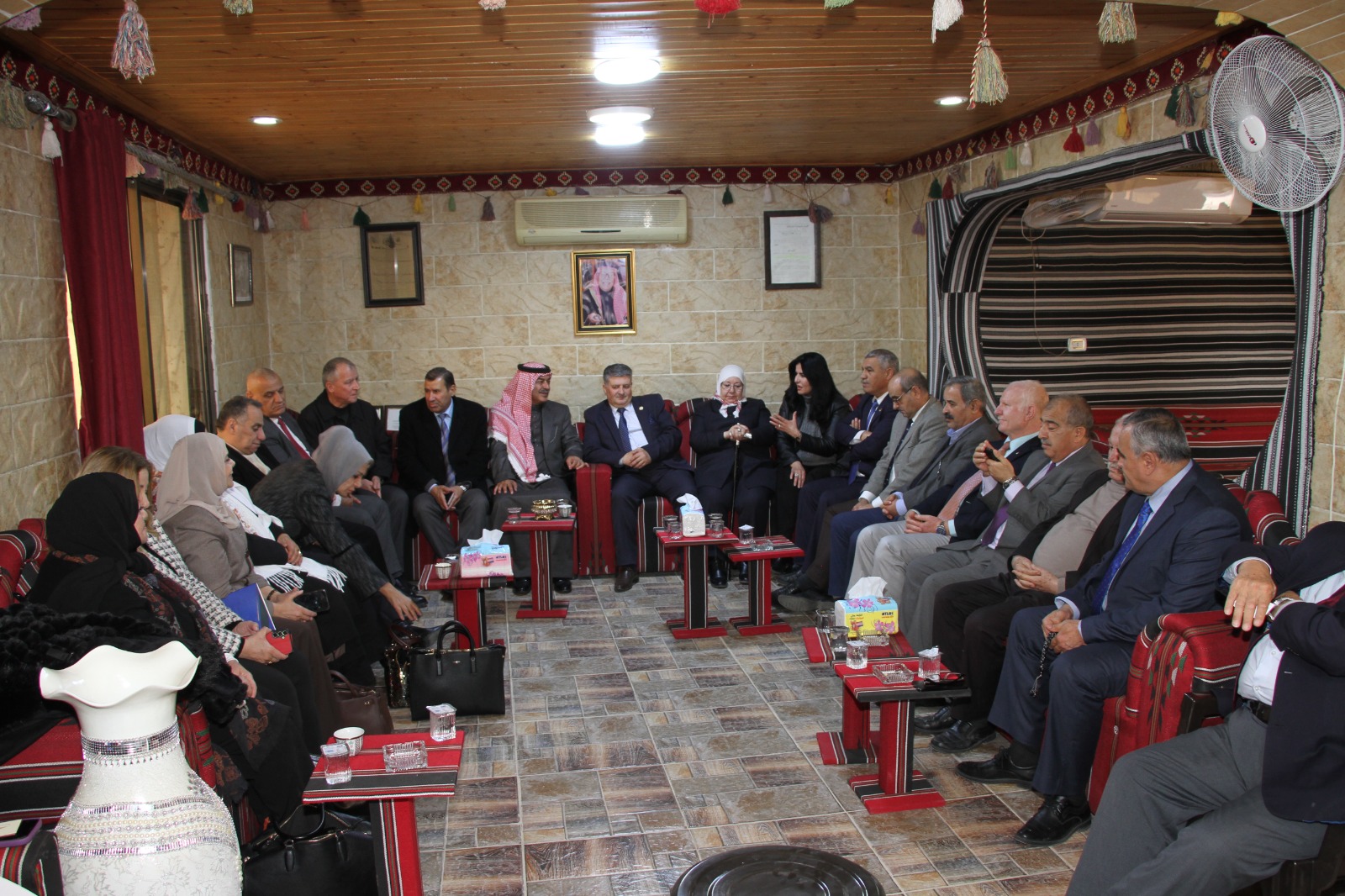وبعد إنتهاء مراسم الزيارة توجه السيد عمر البرزنجي سفير جمهورية العراق والوفد المرافق ورئيس وأعضاء وفد جمعية عَون الثقافية الوطنية إلى ديوان الشيخ عبدالله عقله نواش ابو دلبوح/المحافظ السابق/عضو الهيئة الإستشارية والتوجيهية لجمعية عَون الثقافية الوطنية الذي كان على رأس مستقبلي السفير إلى جانب أشقاءه وشقيقته الدكتورة العين ريم عقلة نواش ابو دلبوح عضو مجلس الأعيان.