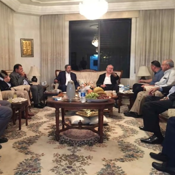 عمون - صورة تجمع الرئيس الأسبق الراحل علي ابوالراغب، والوزير الاسبق الراحل مروان الحمود، ومحافظ البنك المركزي السابق زياد فريز، والمحامي حازم النعيمات، والصحفي جورج حواتمة، والصحفي احمد سلامة، في دعوة اقامها ناصر الجنيني في منزله.
