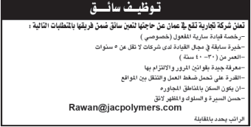 مطلوب سائق للعمل لدى شركة تجارية
