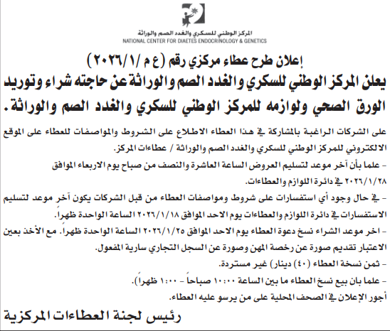 عطاء صادر عن المركز الوطني للسكري