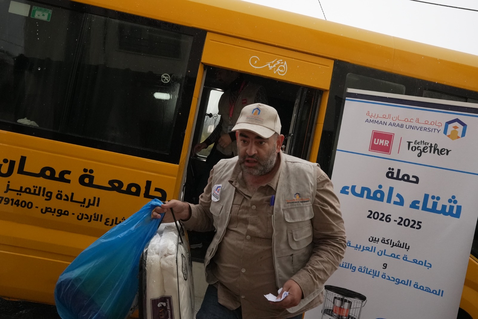 عمون - انطلاقًا من دورها المجتمعي والتزامها بقيم المسؤولية المجتمعية نفّذت جامعة عمان العربية حملة "شتاء دافئ 2025–2026"، وبالتعاون مع منظمة المهمة الموحدة للإغاثة والتنمية – مكتب الأردن (UMR-JO)، بهدف دعم الأسر العفيفة والتخفيف من آثار موجات البرد خلال فصل الشتاء في عدد من محافظات المملكة، حيث استهدفت الحملة دعم (250) أسرة في محافظات جرش، عجلون، البلقاء، والطفيلة، من خلال توفير مستلزمات التدفئة الأساسية، بما يسهم في تعزيز الأمن المعيشي للأسر خلال أربعينية الشتاء التي تُعدّ الأشد برودة.