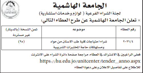 عطاء صادر عن الجامعة الهاشمية