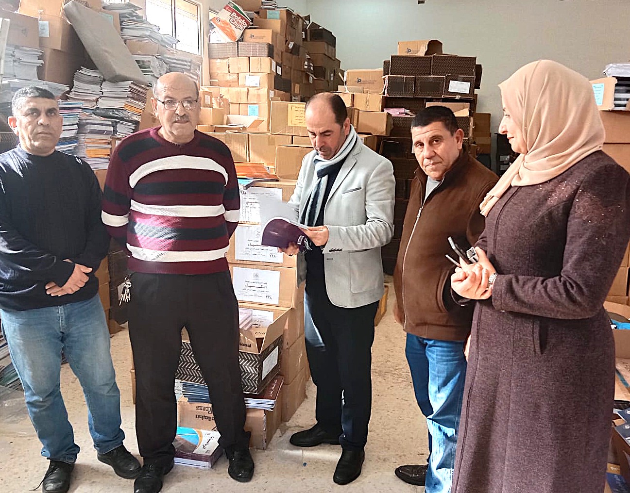 عمون - تابع مدير التربية والتعليم للواء الرمثا، الدكتور فيصل الحوامدة، استلام قسم اللوازم للكتب المدرسية، ومدى جاهزية المستودعات لتلبية احتياجات المدارس قبل بدء الفصل الدراسي الثاني. |