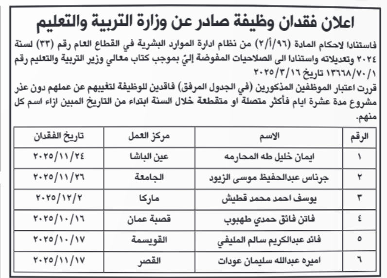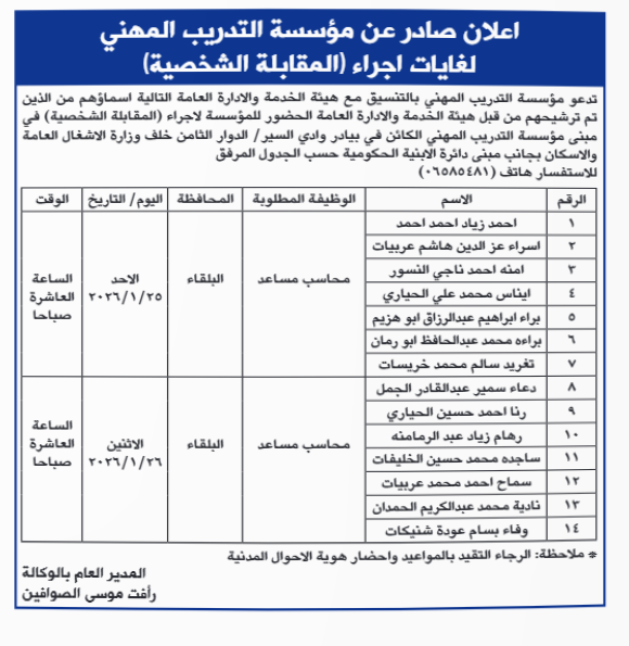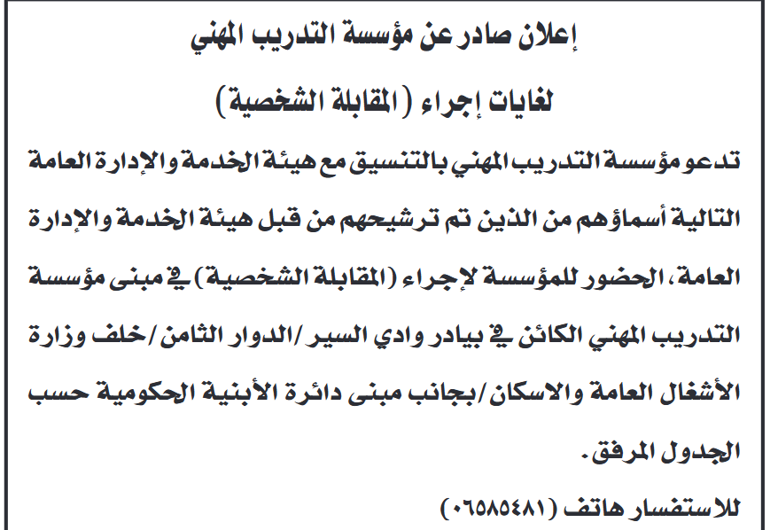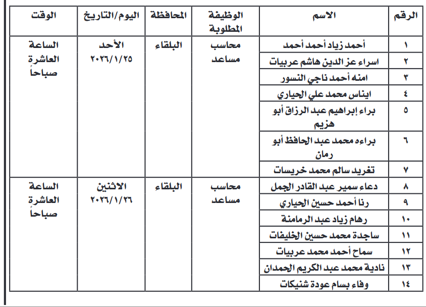 مدعوون لمقابلات شخصية وفاقدون لوظائفهم (أسماء)