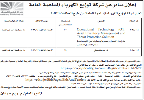 عطاء صادر عن شركة توزيع الكهرباء