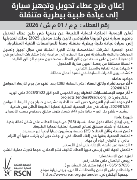 عطاء صادر عن الجمعية الملكية لحماية الطبيعة