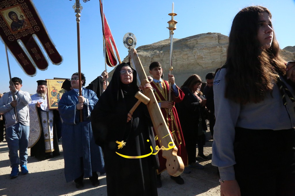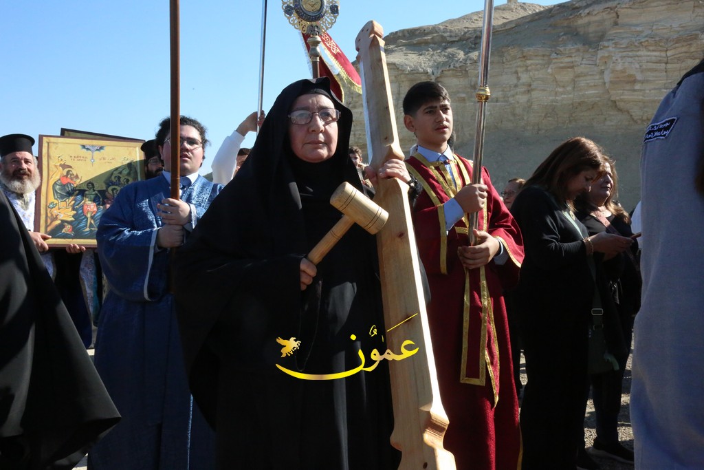 وجرى خلال الاحتفال رفع الصلوات بمشاركة لفيف كبير من كهنة الكنيسة الأرثوذكسية، تقدمهم سيادة المطران خريستوفوروس مطران الأردن رئيس مجلس رؤساء الكنائس. وبحسب تقليد أم الكنائس الشريف، وعادات أجداد الأجداد، ألقى المطران الصليب في مياه نهر الأردن من ضفته الشرقية حيث اعتمد السيد المسيح -له المجد- على يد سابقه القديس يوحنا المعمدان شفيع البلاد، وسط ابتهال وفرح الحجاج وإطلاق طيور الحمام الأبيض وموسيقات كشافة الكنيسة الأرثوذكسية.