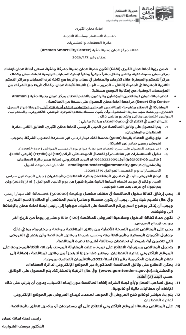 عطاء صادر عن أمانة عمان الكبرى