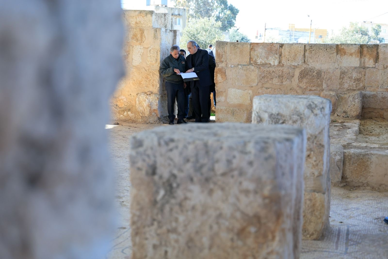 عمون - تفقد رئيس الوزراء الدكتور جعفر حسَّان، اليوم السبت، موقع رحاب الأثري في محافظة المفرق، الذي يضمُّ العديد من الكنائس والمعالم التَّاريخيَّة. |