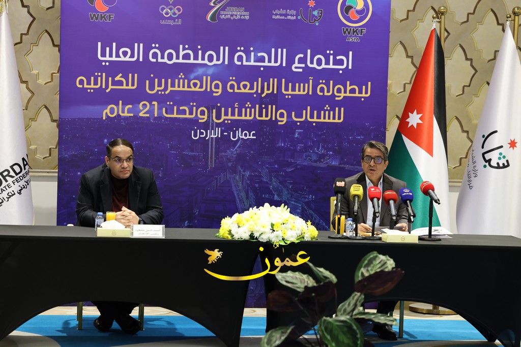 عمون - ترأس وزير الشباب الدكتور رائد سامي العدوان اجتماع اللجنة المنظمة العليا لبطولة آسيا الرابعة والعشرين للشباب والناشئين وتحت سن 21 عام للكراتيه، الذي نظمه الاتحاد الأردني للكراتيه وبالتعاون مع وزارة الشباب، اليوم السبت في قاعة يا هلا بمدينة للشباب وبحضور رئيس الاتحاد حسن مسعود وأعضاء اللجنة.