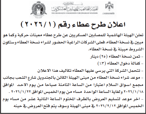 عطاء صادر عن الهيئة الهاشمية للمصابين العسكريين