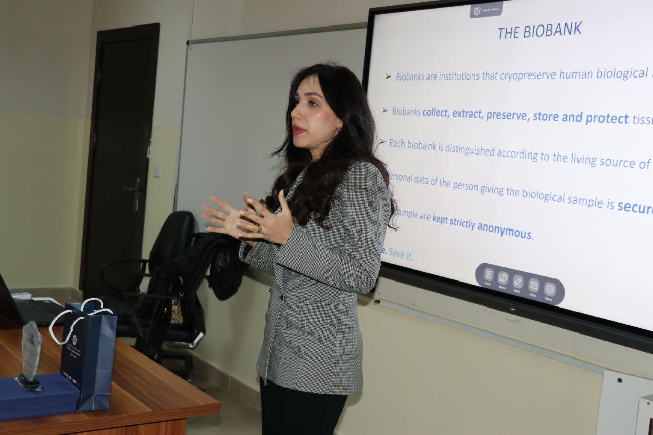 عمون - في إطار حرص جامعة عمان العربية لتعزيز البحث العلمي ومواكبة أحدث التطورات في العلوم الطبية الحيوية، نظّمت كلية العلوم الطبية التطبيقية في الجامعة محاضرة علمية متخصصة بعنوان: "التكنولوجيا الحيوية: مفاتيح الابتكار في مجال الجينات والخلايا الجذعية"، وذلك بالتعاون مع INNOVIA Biobank (Baby Cord)، بهدف ترسيخ ثقافة البحث العلمي، وربط المعرفة النظرية بالتطبيق العملي، وفتح آفاق علمية واسعة أمام الطلبة في مجالات التكنولوجيا الحيوية والعلوم الطبية المتقدمة، بمشاركة أعضاء الهيئة التدريسية والطلبة في الكلية. |