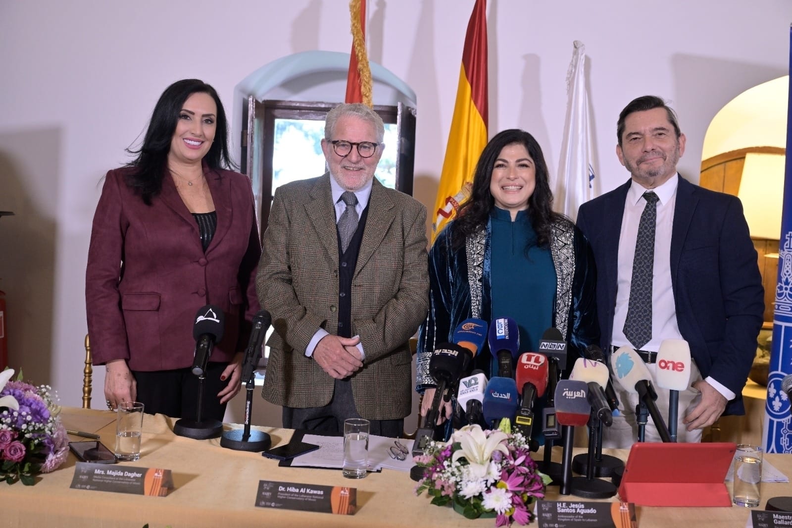 وتحدثت الدكتورة هبة القواس عن الجائزة وأهميتها وعن التعاون المشترك قائلة: "يشرفني، ويشرّف بيروت، ويشرّف لبنان، أن نلتقي اليوم في هذا المكان التاريخي العريق، قصر شهاب؛ الذي لا يمثّل فقط مقر إقامة سفير مملكة إسبانيا في لبنان، بل يمثّل رمزًا حيًّا للذاكرة، وللحوار بين الحضارات، وللدبلوماسية الثقافية التي تتجاوز السياسة لتصل إلى جوهر الإنسان. اليوم الموسيقى تتكلم قبل السياسة وقبل الحدود، اليوم بيروت تخاطب العالم. نلتقي اليوم لإعلان إطلاق(: Beirut International Guitar Competition & Festival – BIGCAF) جائزة ومهرجان بيروت الدولي للغيتار، تحت مظلة مؤسسة "ألكري الدولية لفنون الغيتار"، كمشروع ثقافي دولي، يُعيد رسم خريطة الحضور الموسيقي العالمي من بيروت. إن إطلاق هذا الحدث من بيروت هو تأكيد على أن هذه المدينة ليست هامشًا ثقافيًا، بل مركز قرار ثقافي قادر على وضع معايير فنية دولية، وإنتاج منصّات احترافية، وجذب أسماء عالمية، وبناء مشاريع طويلة الأمد ذات مصداقية مؤسساتية."