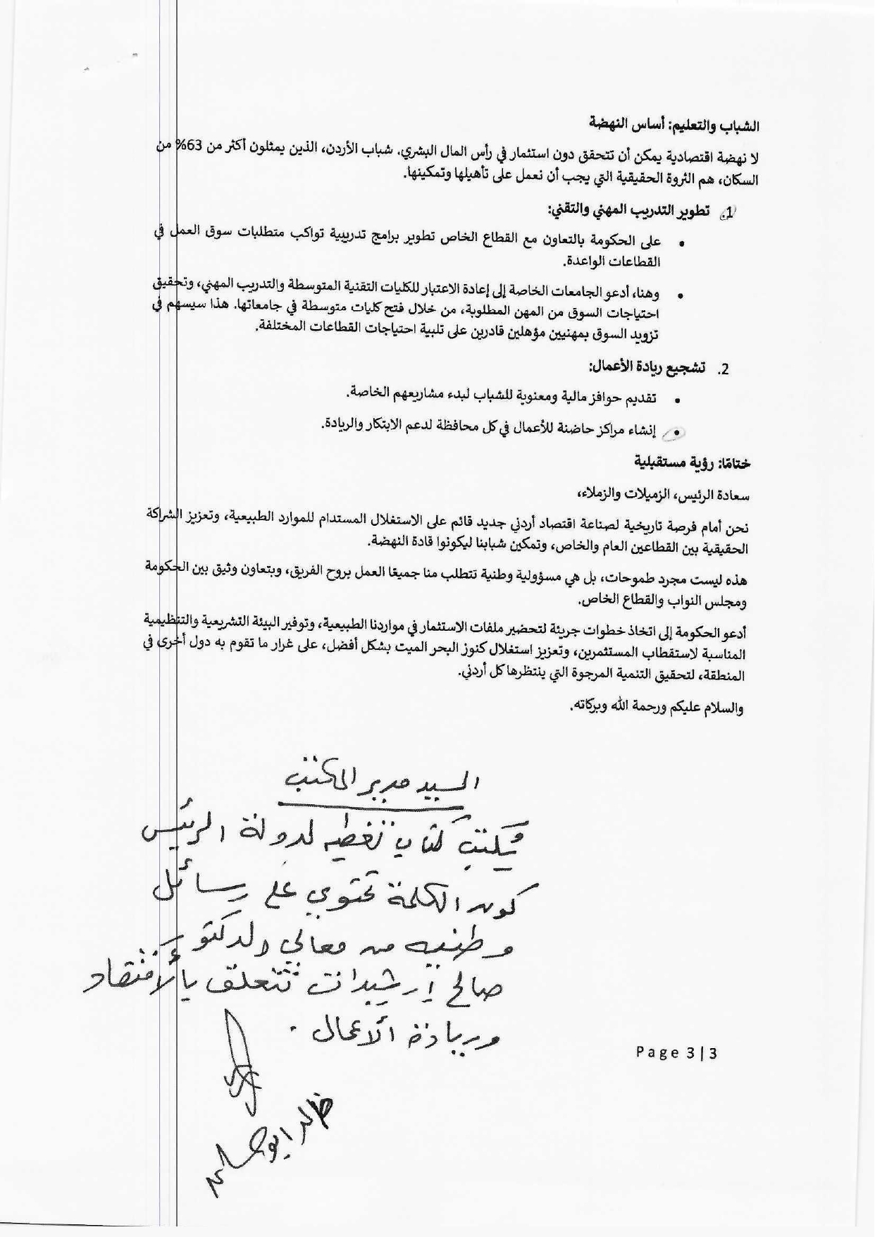 وأشارت الوصية أن القطاع العام وصل إلى مرحلة “التشبع الوظيفي”، مما يجعل القطاع الخاص الشريك الوحيد القادر على استيعاب طاقات الشباب الأردني.
