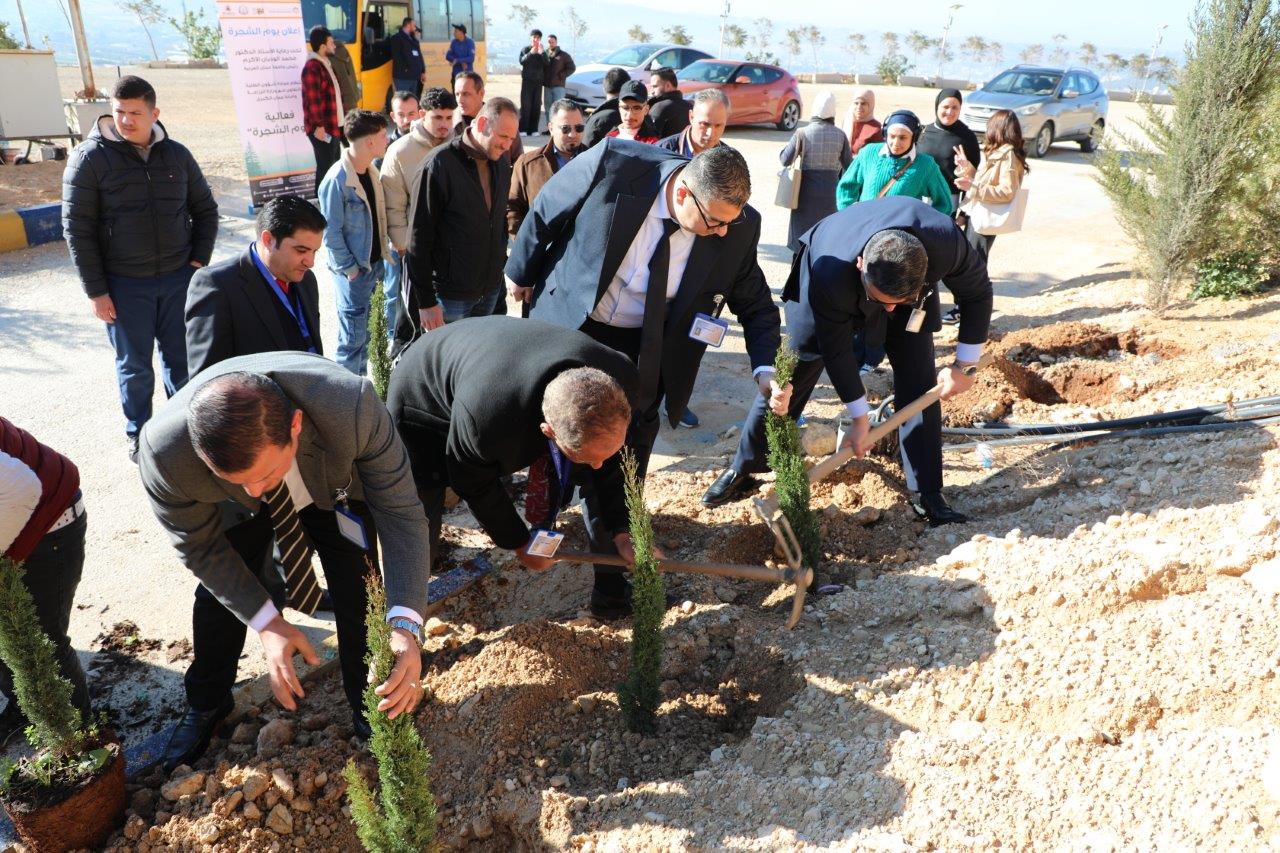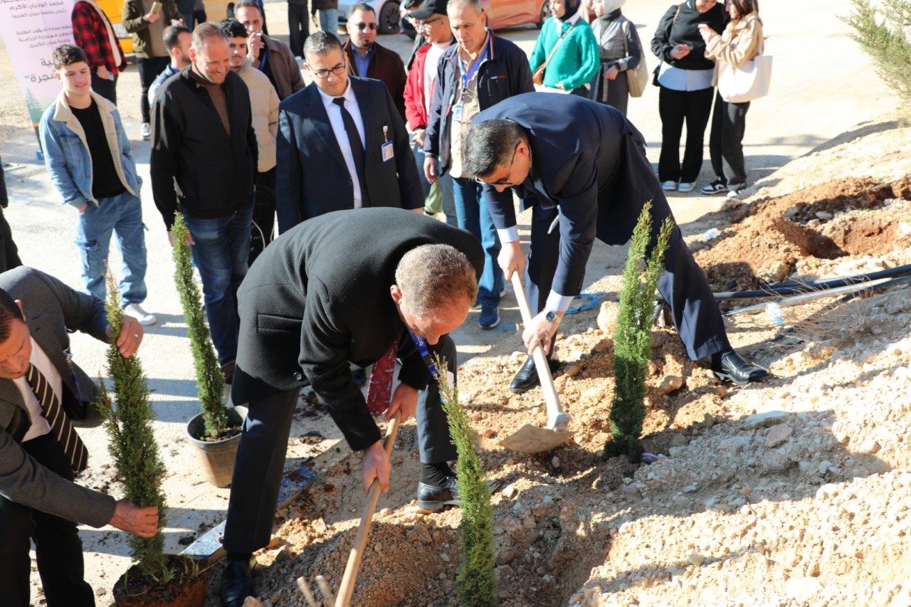 عمون - في إطار تعزيز الوعي البيئي في جامعة عمان العربية وترسيخ مفاهيم العمل التطوعي والمسؤولية المجتمعية وتحت رعاية الأستاذ الدكتور محمد الوديان رئيس الجامعة، نظّمت عمادة شؤون الطلبة، وبالتعاون مع وزارة الزراعة وأمانة عمّان الكبرى فعالية يوم الشجرة، وبحضور الأستاذ الدكتور حسام الحمد نائب رئيس الجامعة للتخطيط وضمان الجودة مندوباً عن رئيس الجامعة، والدكتور محمد بن طريف عميد شؤون الطلبة، وعدد من عمداء الكليات، إلى جانب كادر عمادة شؤون الطلبة، وبمشاركة عدد من طلبة الجامعة.