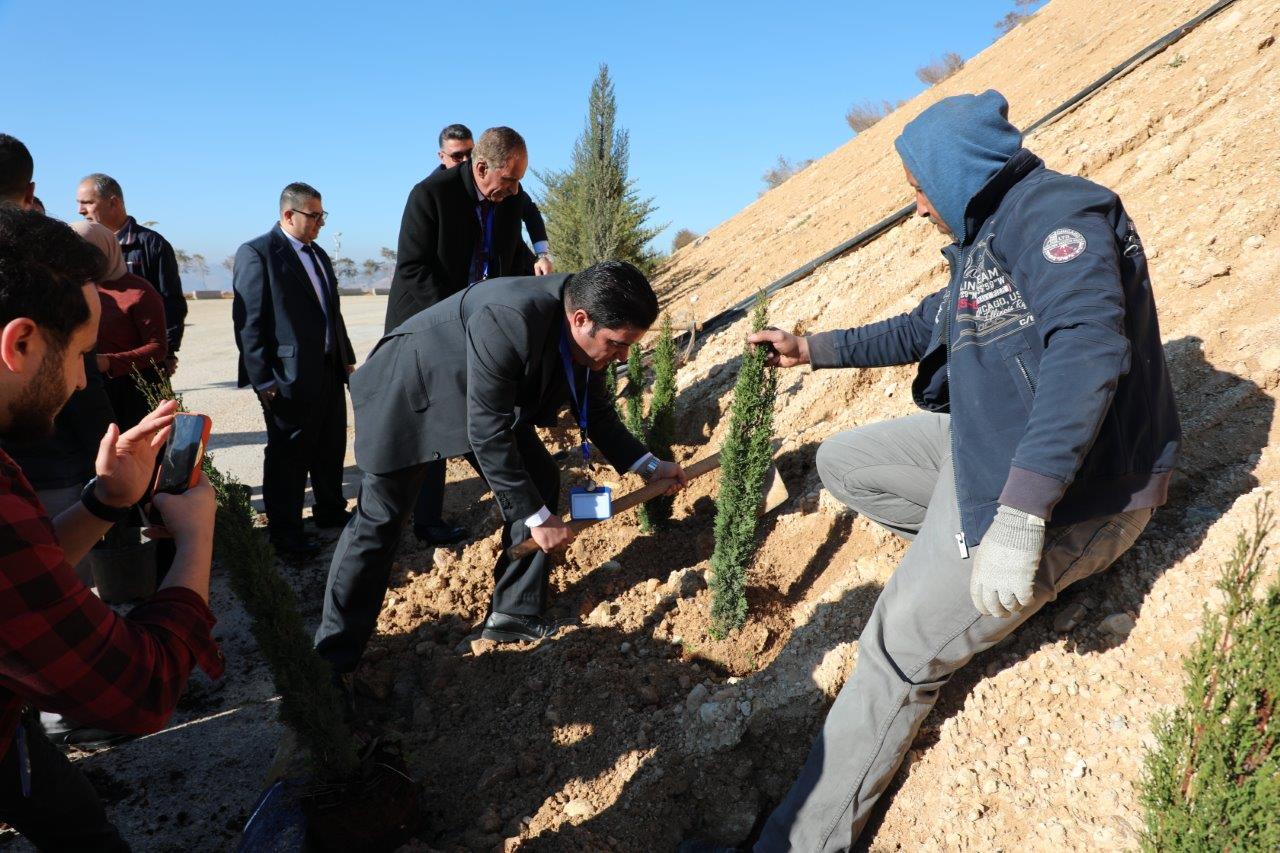 وبهذا الصدد أكد الدكتور الحمد أن تنظيم مثل هذه المبادرات البيئية يُشكّل ركيزة أساسية في نشر الوعي البيئي لدى الطلبة، وتعزيز إدراكهم لأهمية الحفاظ على الموارد الطبيعية وزيادة الرقعة الخضراء داخل المجتمع الجامعي وخارجه، لافتًا إلى أن الأشجار تمثّل عنصرًا جوهريًا في تحقيق أهداف التنمية المستدامة وتحسين جودة الحياة، مشيراً إلى أن هذه الفعالية تنسجم مع استراتيجية جامعة عمان العربية في دمج البعد البيئي ضمن أنشطتها وبرامجها المختلفة، بما يعكس التزامها بدورها الوطني والمجتمعي في دعم القضايا البيئية، وتشجيع الطلبة على المشاركة الفاعلة في المبادرات التي تسهم في بناء مستقبل أكثر استدامة.
